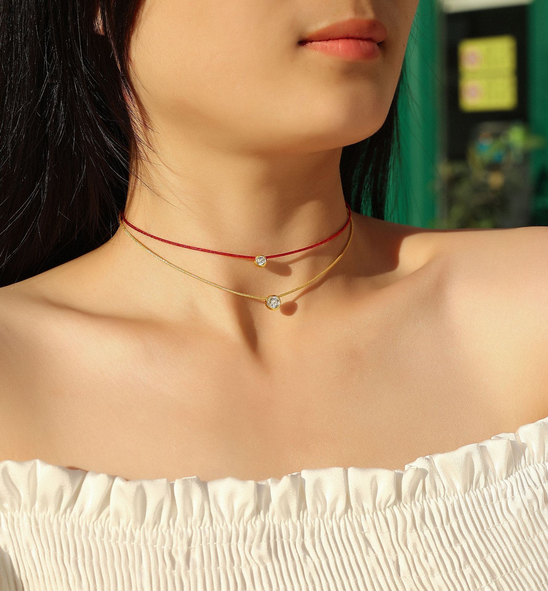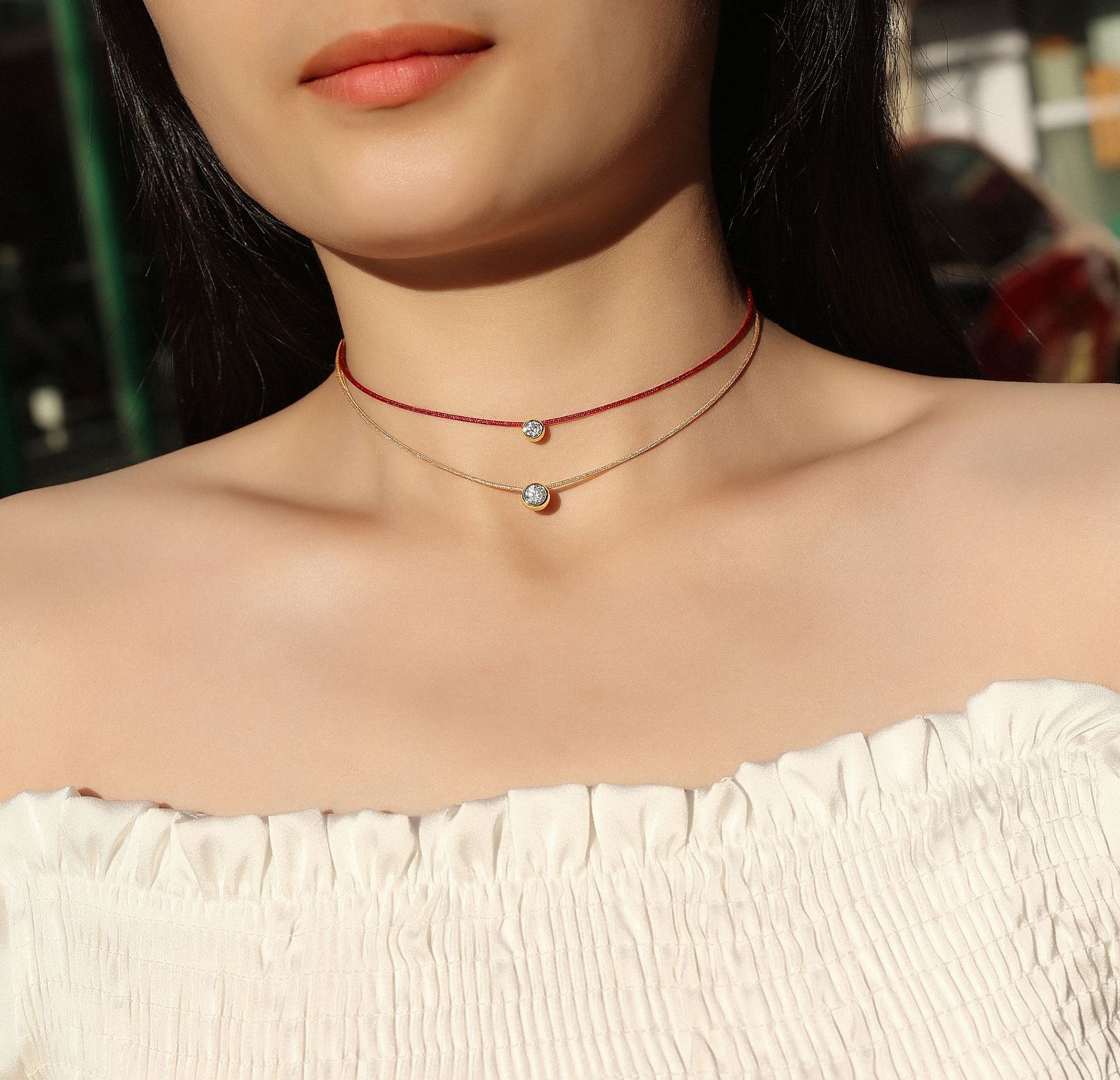 双层叠戴夜光女单珠项圈转运手工编织时尚轻奢高级感项链吊坠