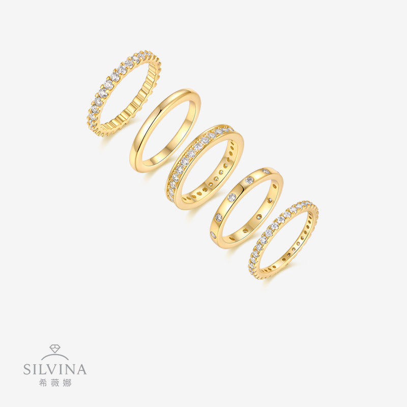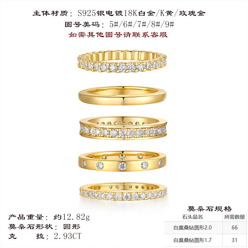 亚马逊跨境叠戴素圈排戒莫桑石银戒指S925银莫桑石男女组合戒指