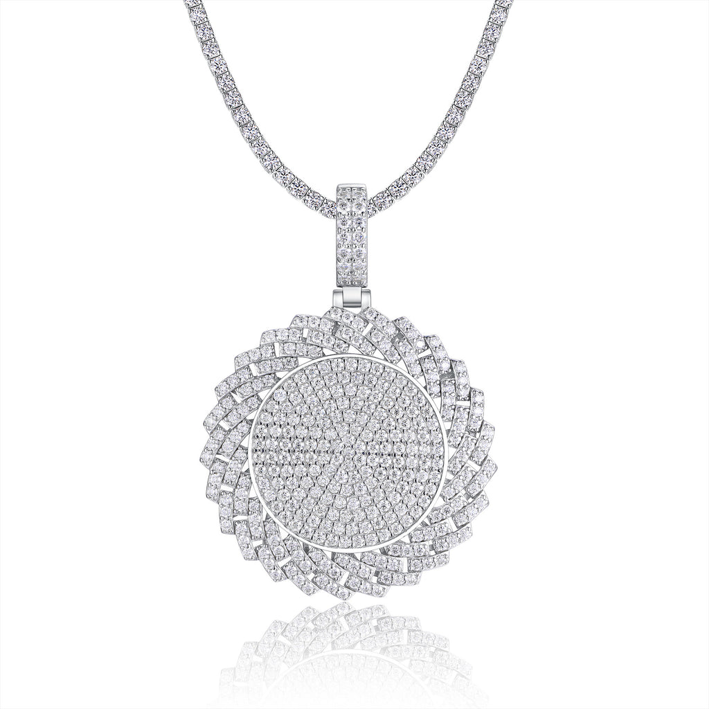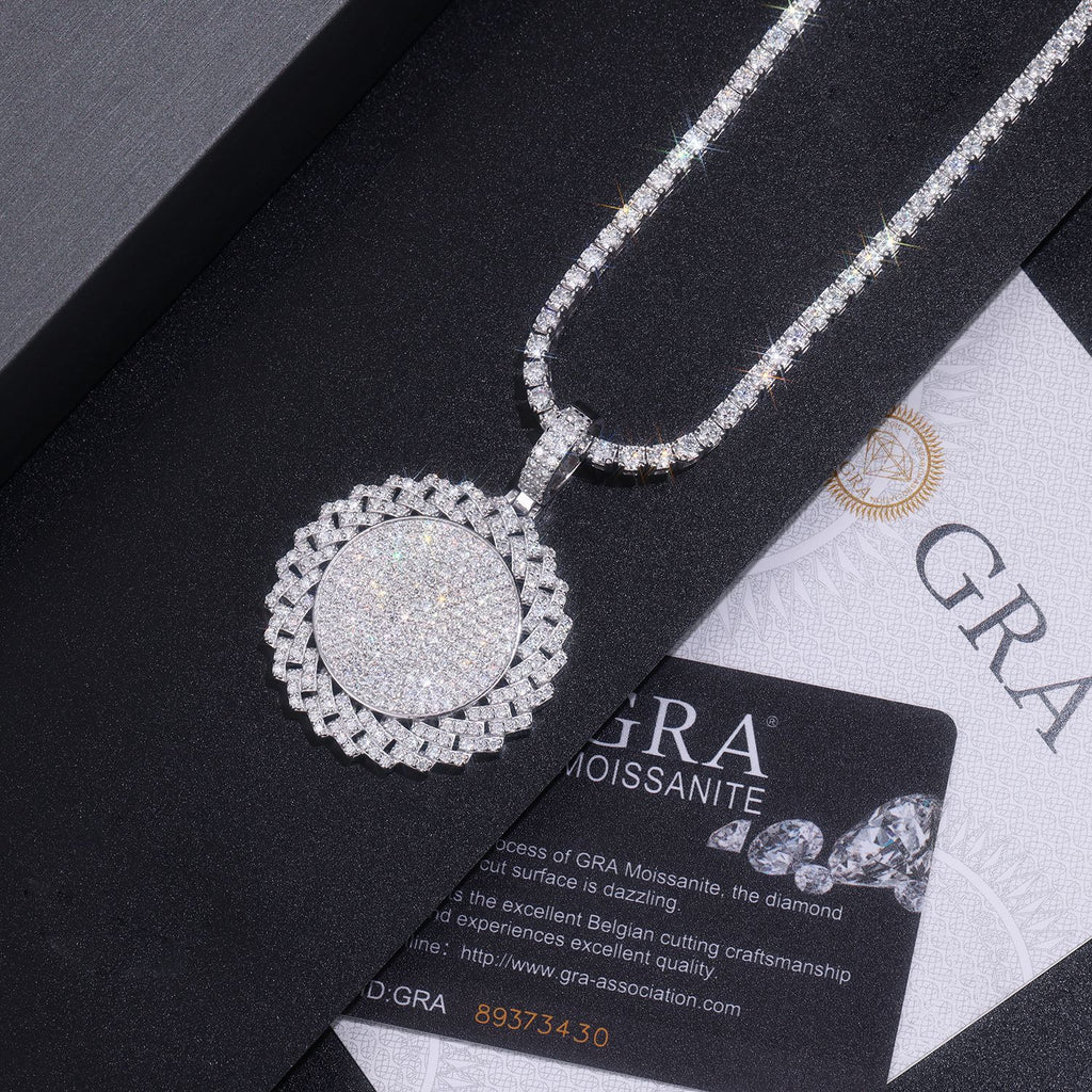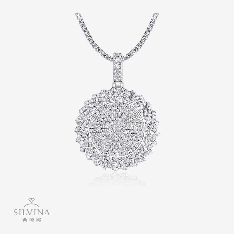 跨境嘻哈高级感夸张不掉色吊坠 925银莫桑石电镀白金配网球链吊坠