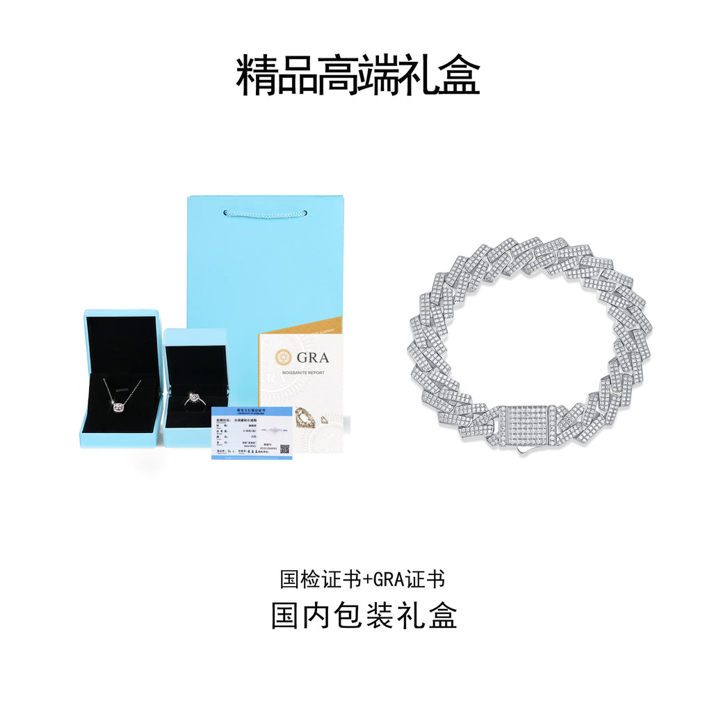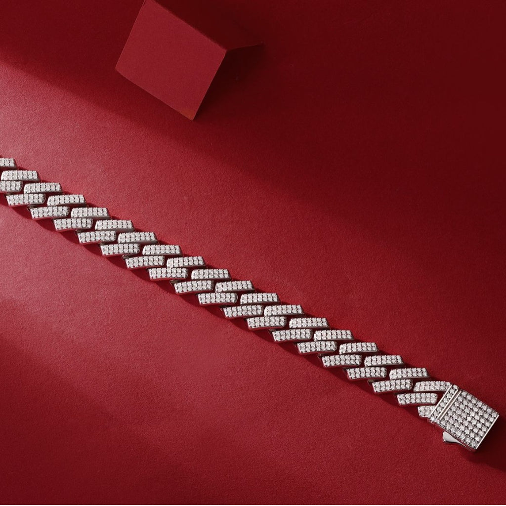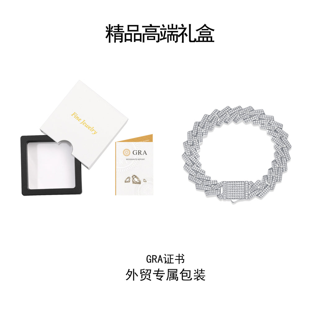 跨境亚马逊夸张嘻哈双排手链电镀加厚S925纯银莫桑钻男女古巴手链
