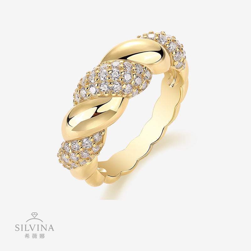亚马逊速卖通沃尔玛跨境源头工厂 ins风男女戒S925银莫桑钻18K黄
