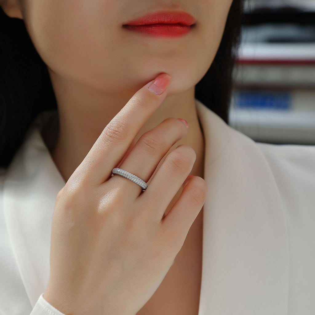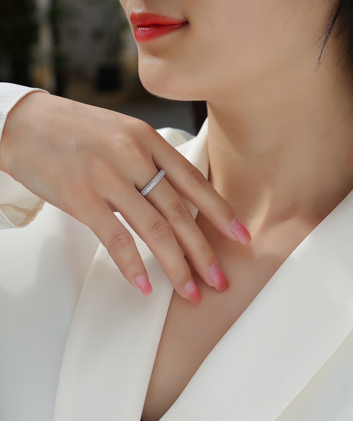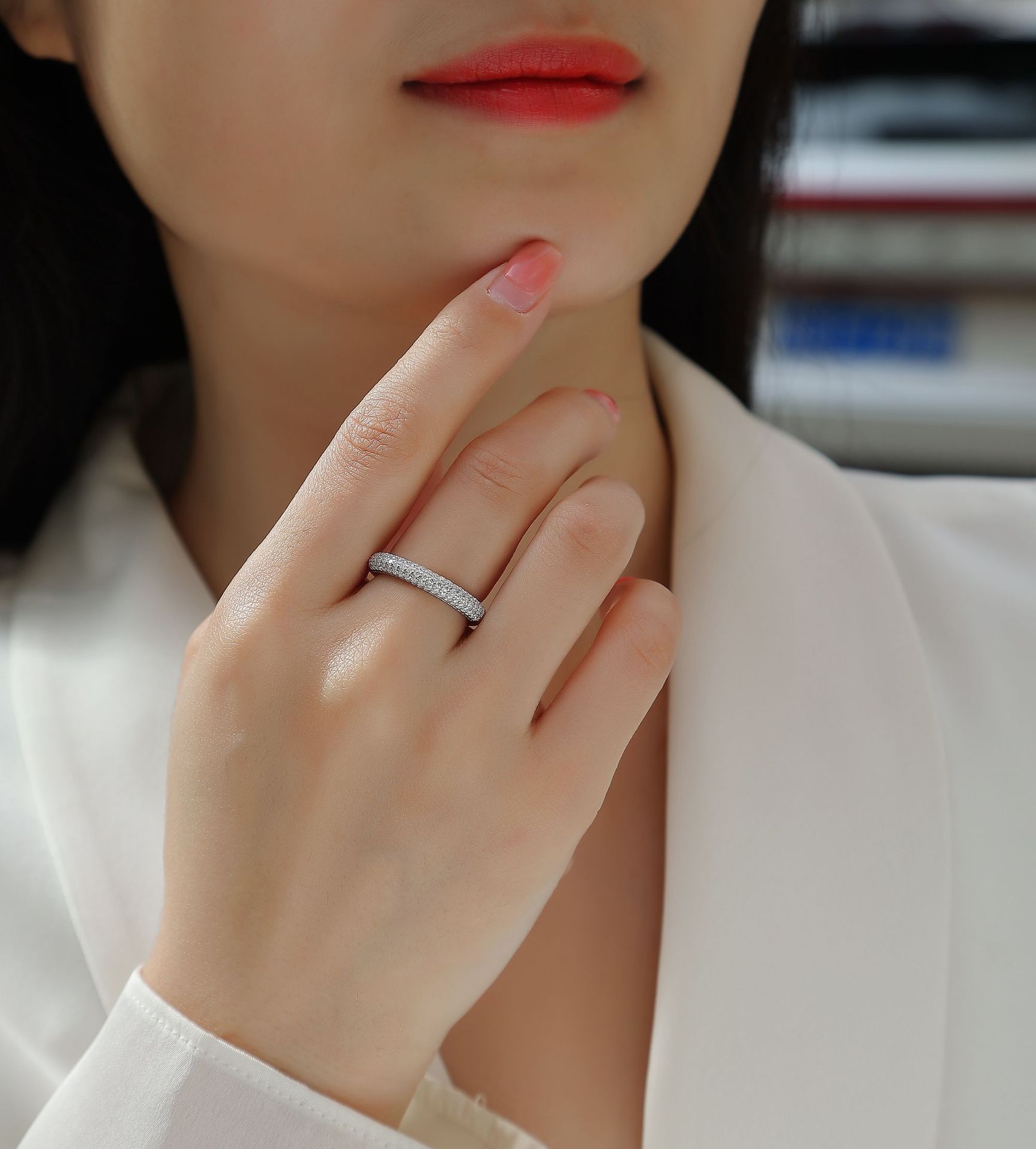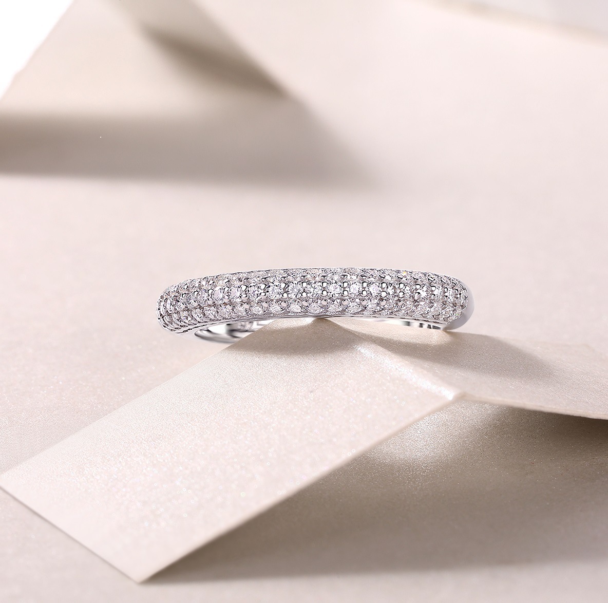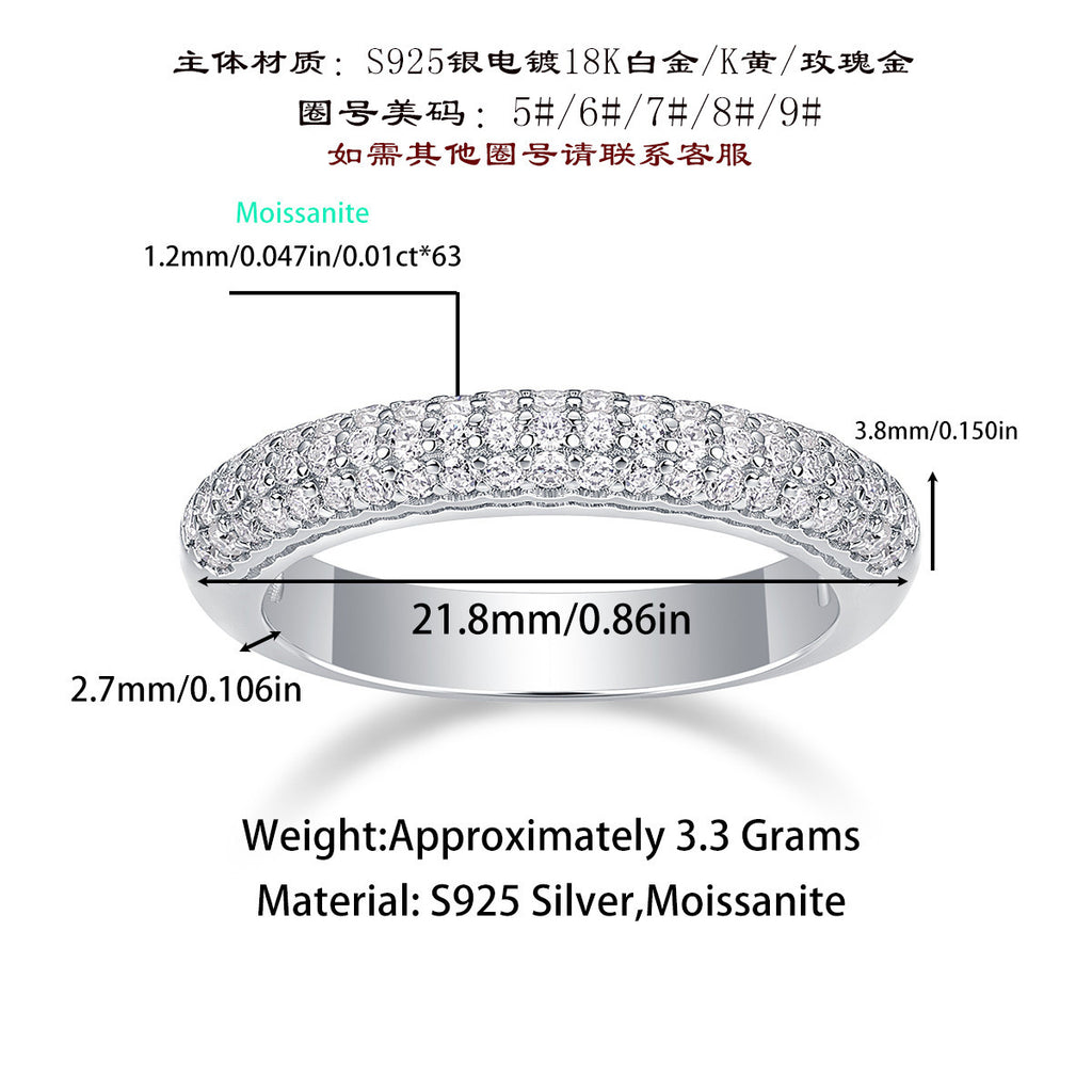 欧美亚马逊Shopify热销源头工厂 S925纯银戒指闭口半圈全莫桑戒指