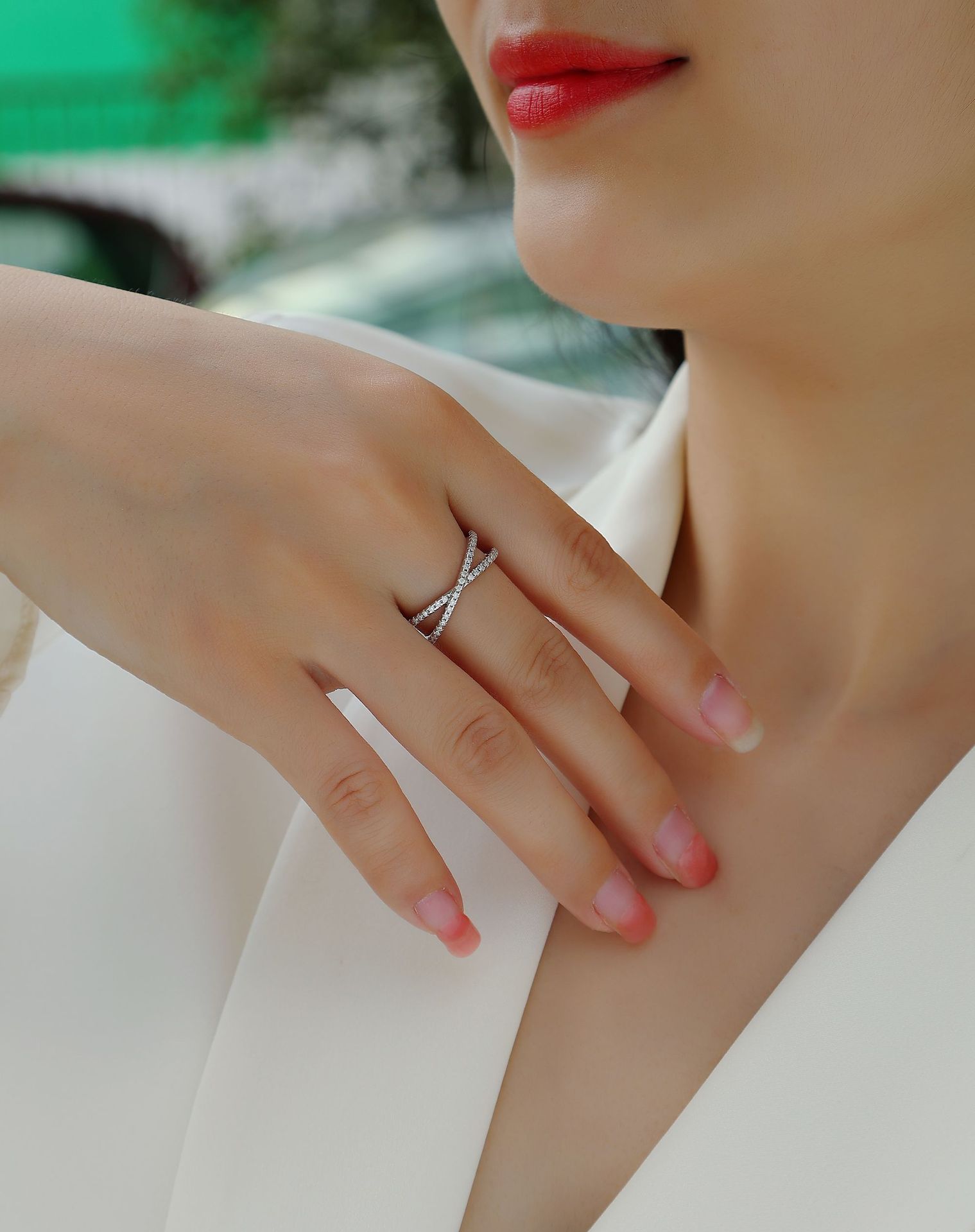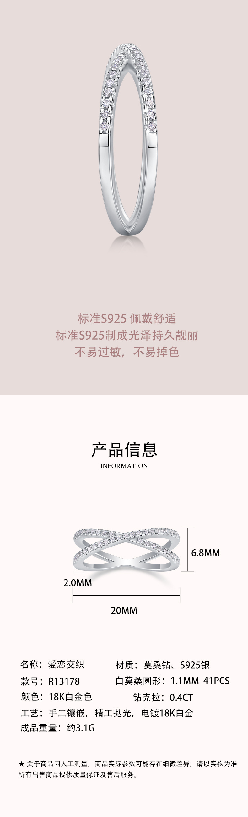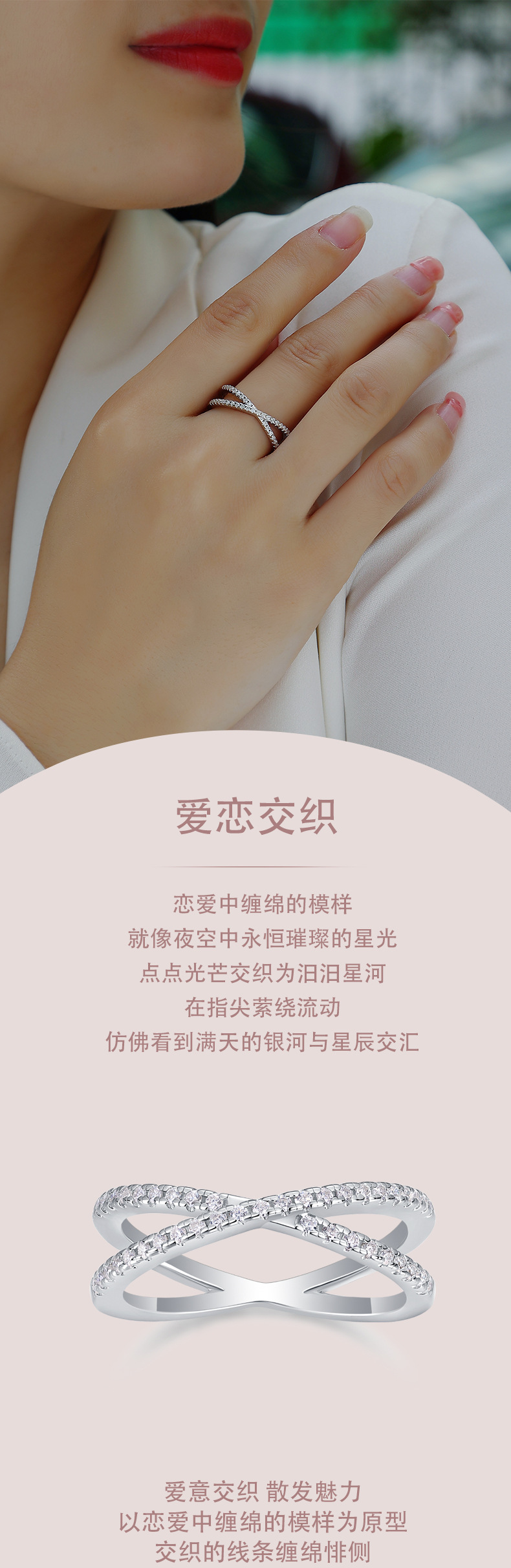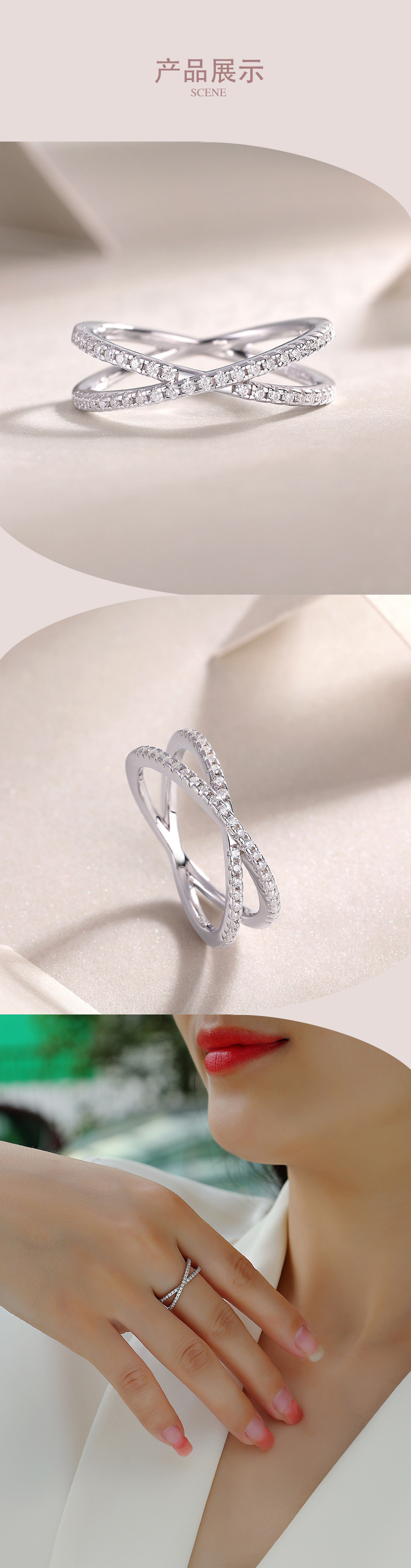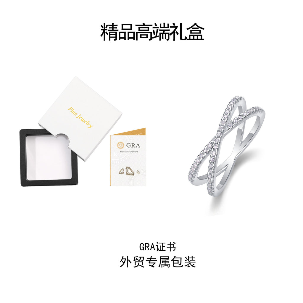 新款ins风小众设计高级感莫桑石戒指女925纯银戒指婚礼指环排戒