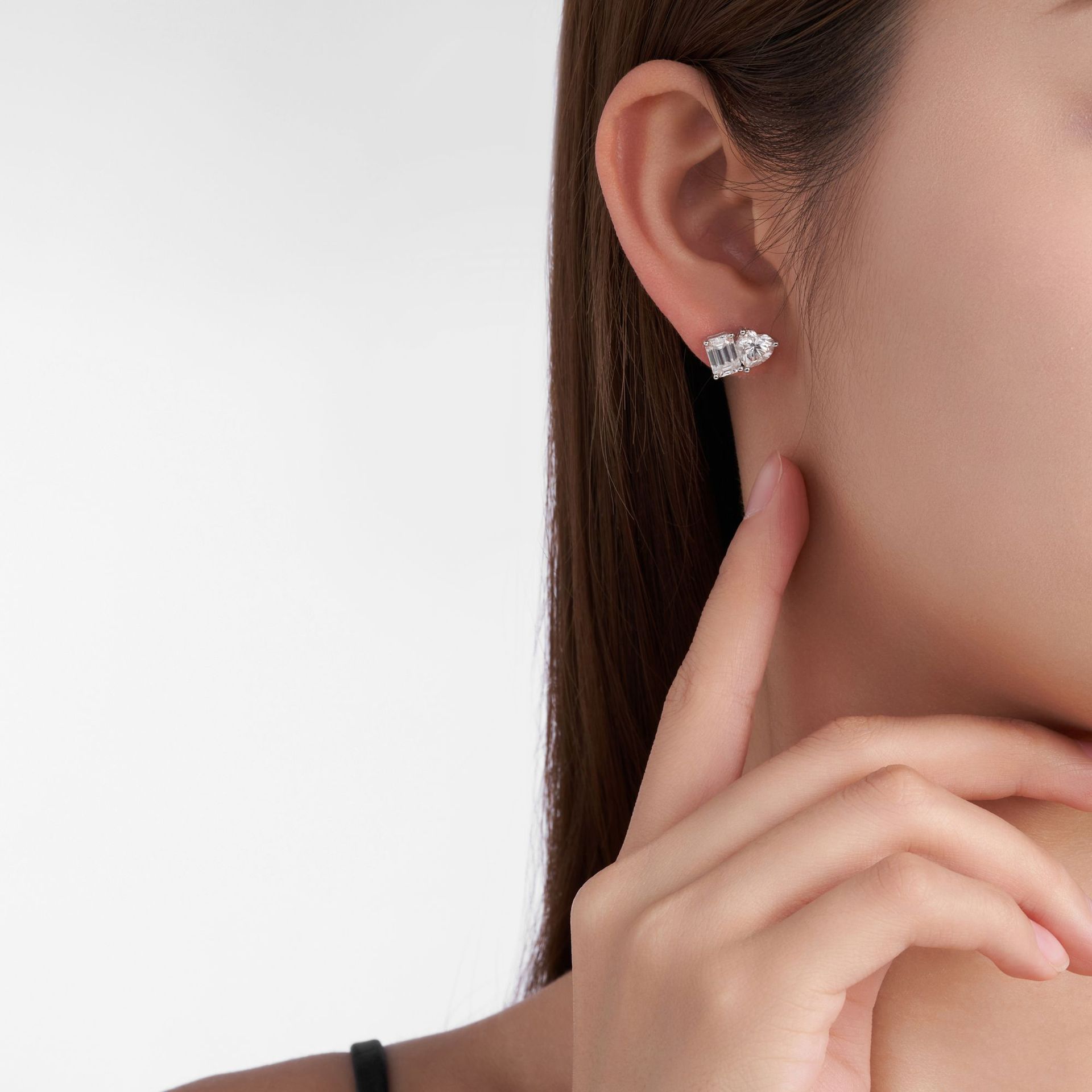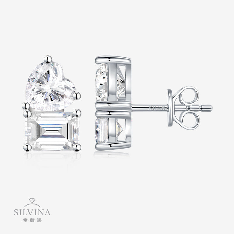 新款异形耳钉925银D色莫桑石耳钉时尚百搭简约耳环女