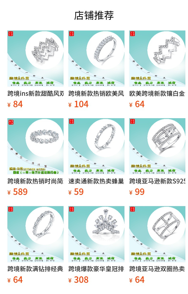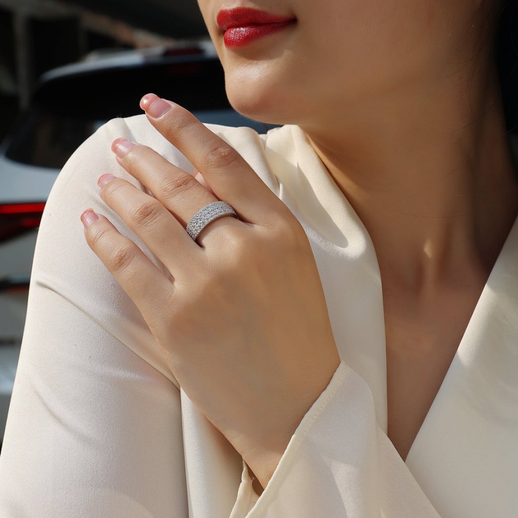 跨境新款源头批发现货指圈一件代发S925纯银莫桑石满钻戒子饰品