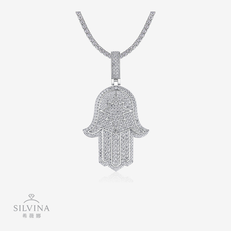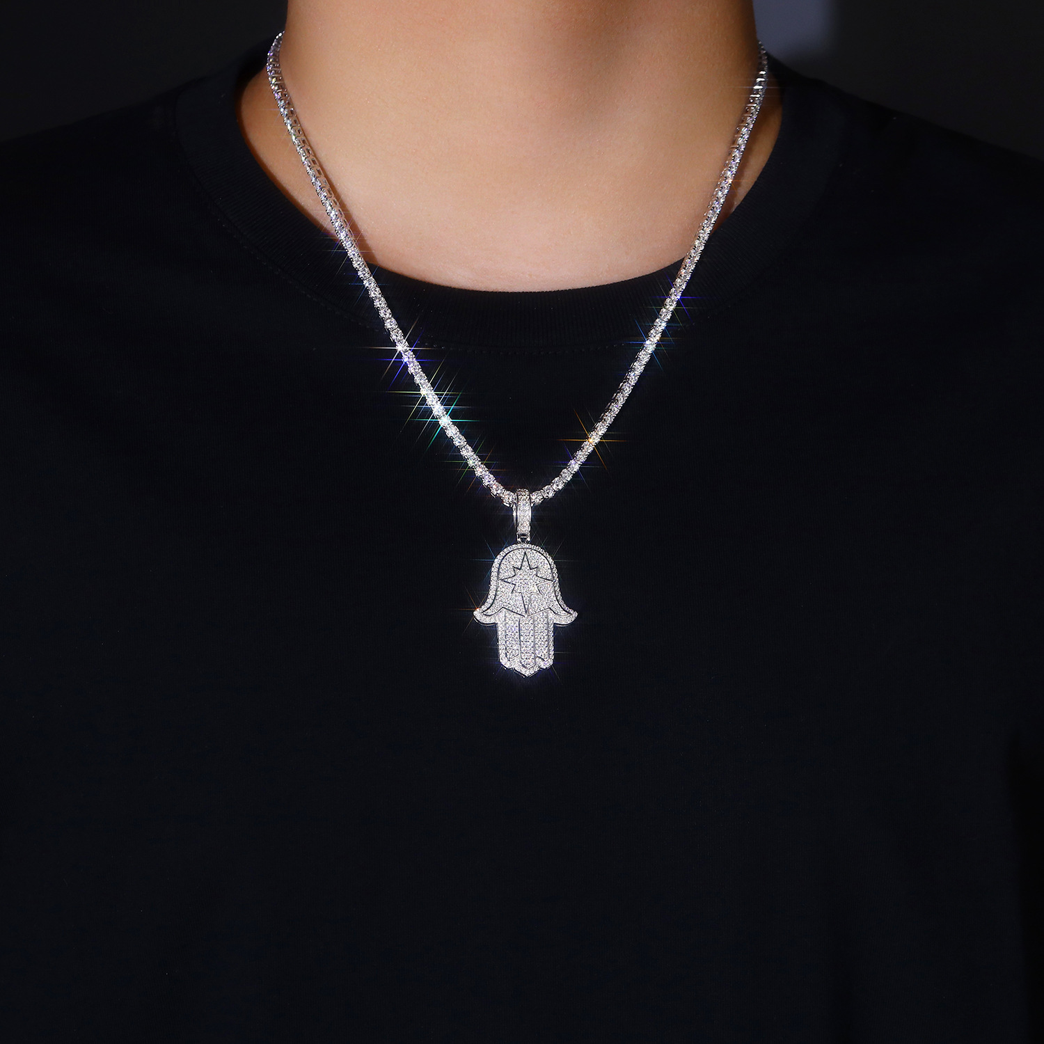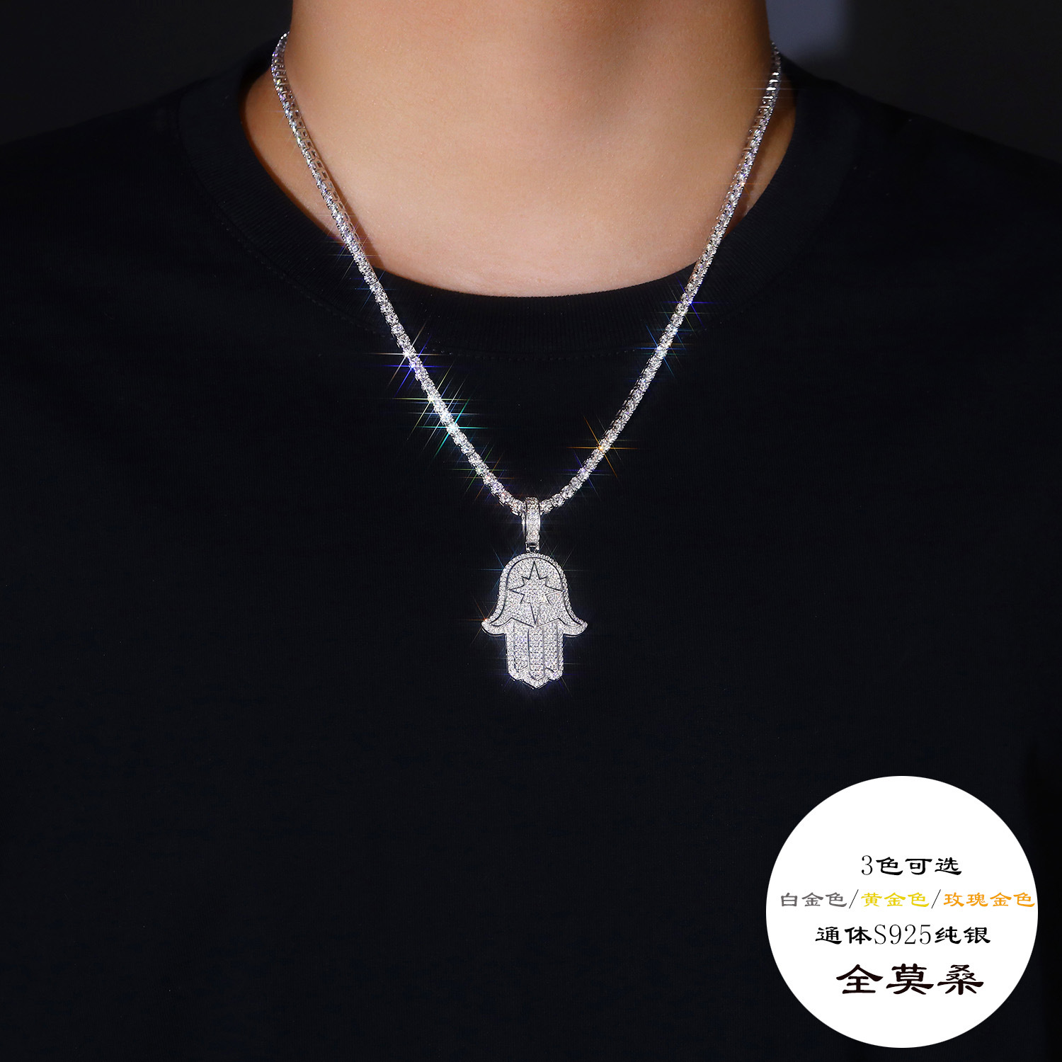 欧美跨境新款925纯银镶莫桑项坠嘻哈吊坠可穿过网球项链男士吊坠