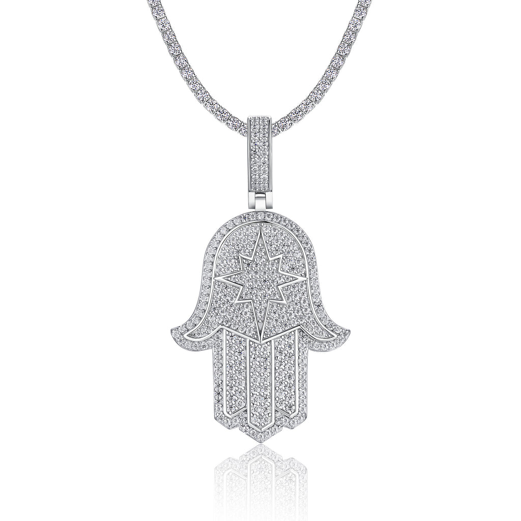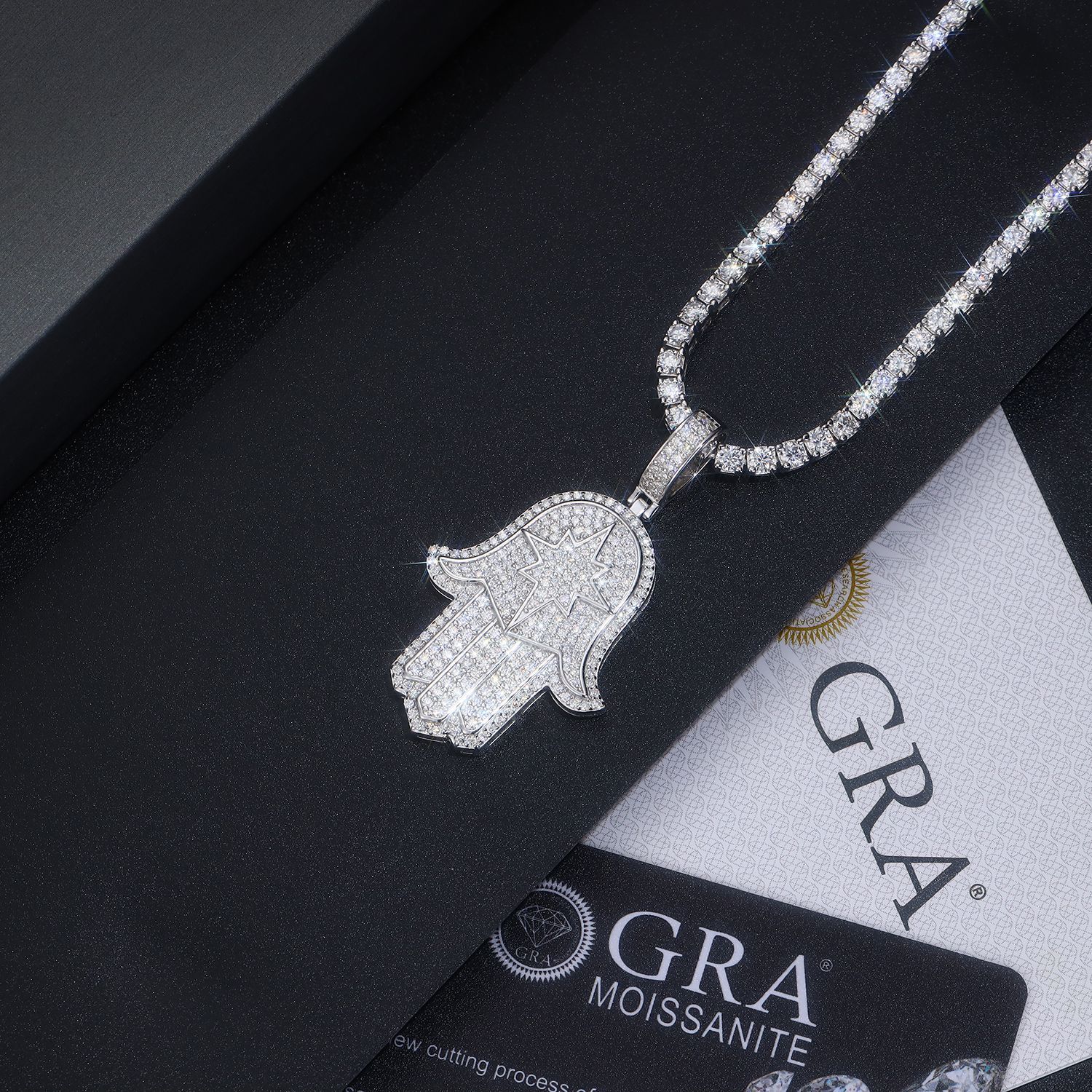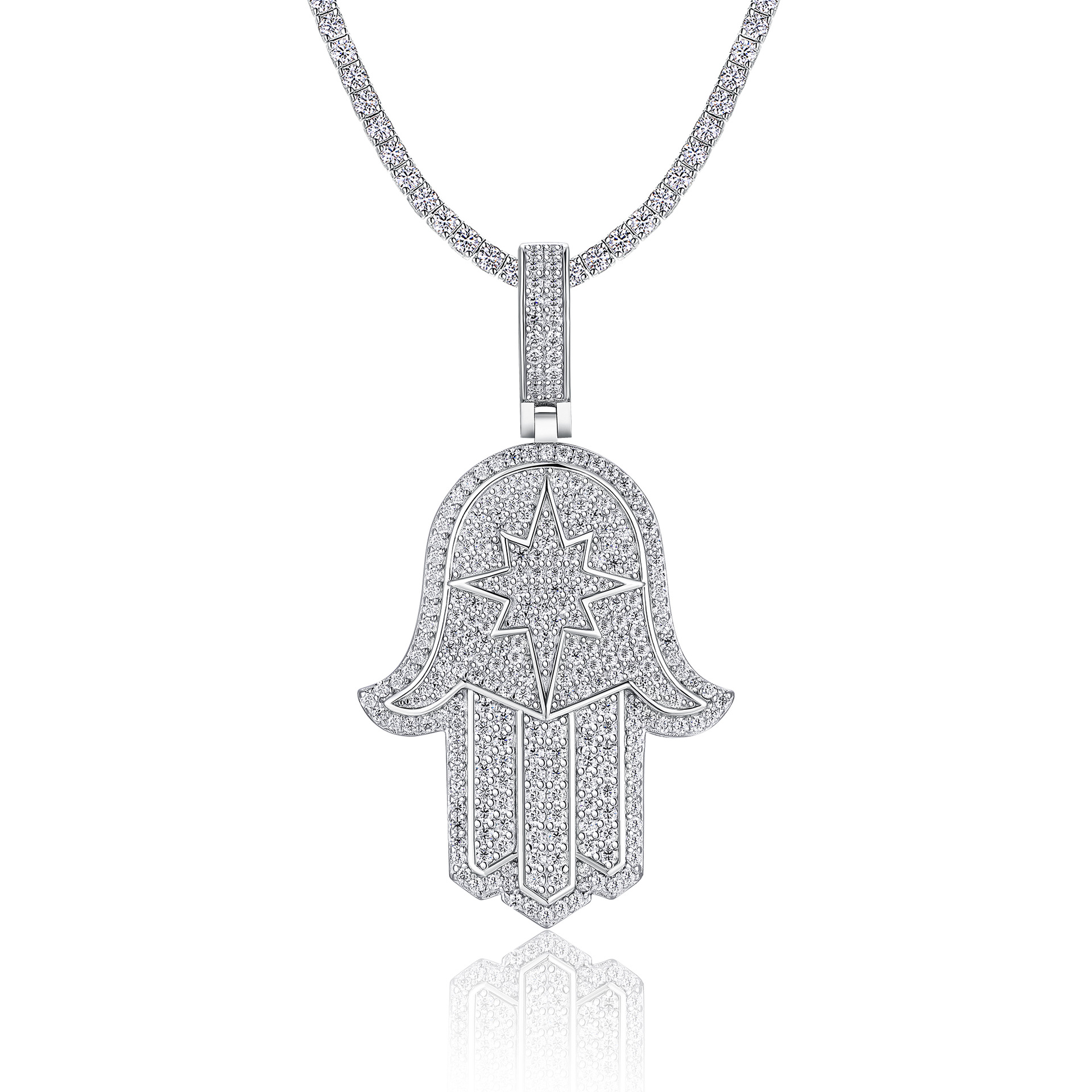 欧美跨境新款925纯银镶莫桑项坠嘻哈吊坠可穿过网球项链男士吊坠