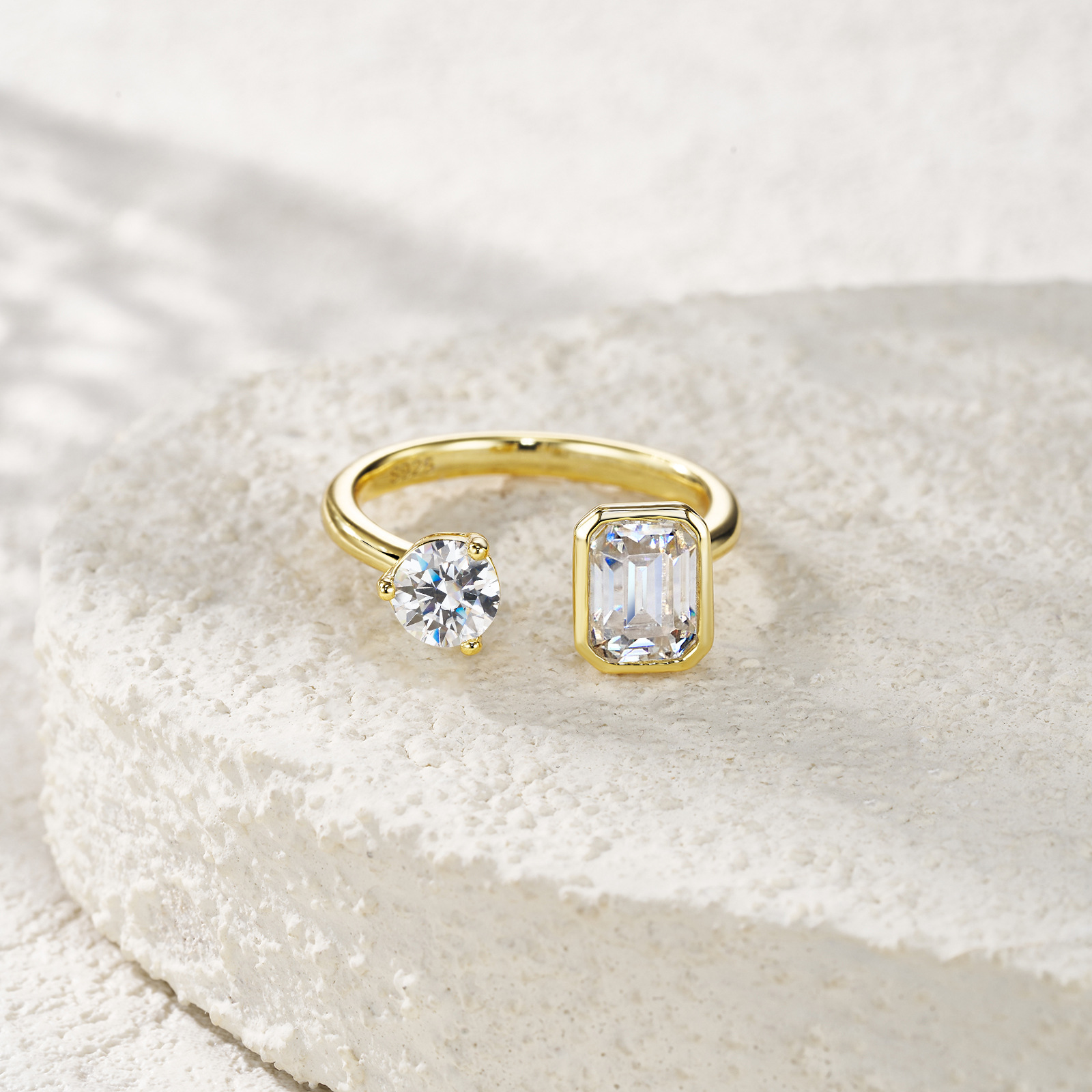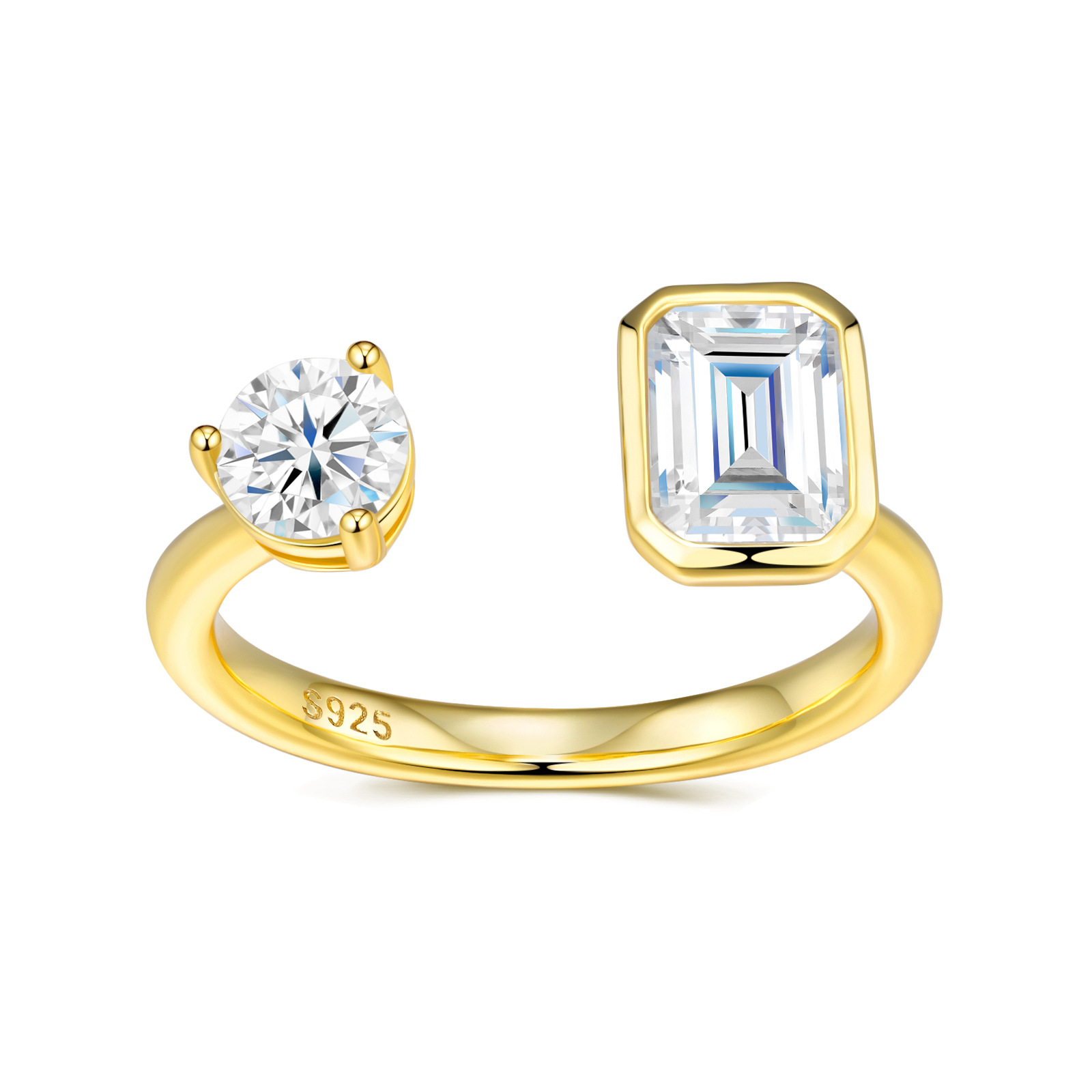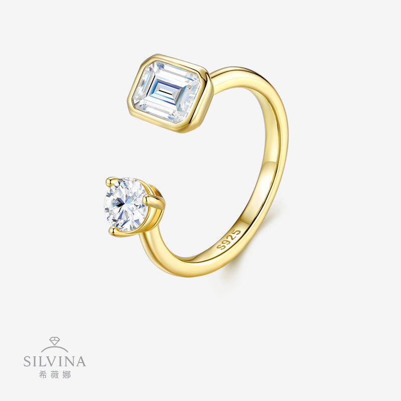 新款S925纯银镀金莫桑石戒指时尚轻奢气质复古指环女式