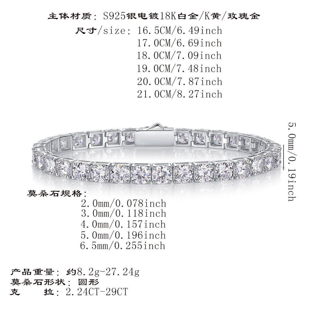 欧美亚马逊跨境爆款镀18k莫桑石单排链s925纯银男士女士网球手链
