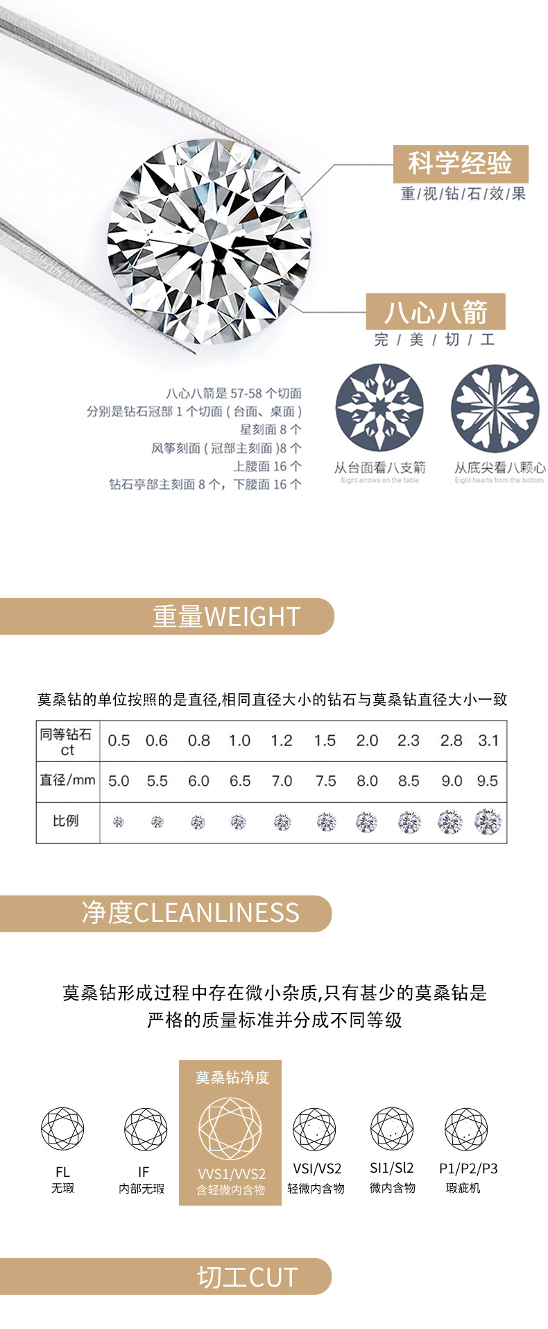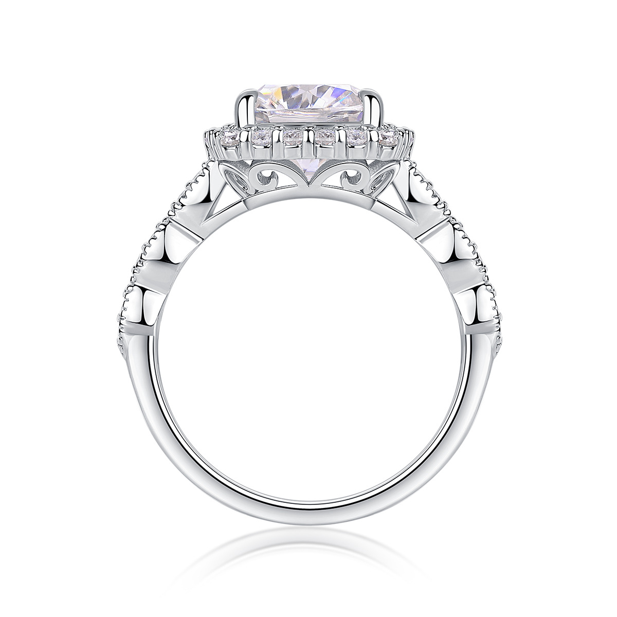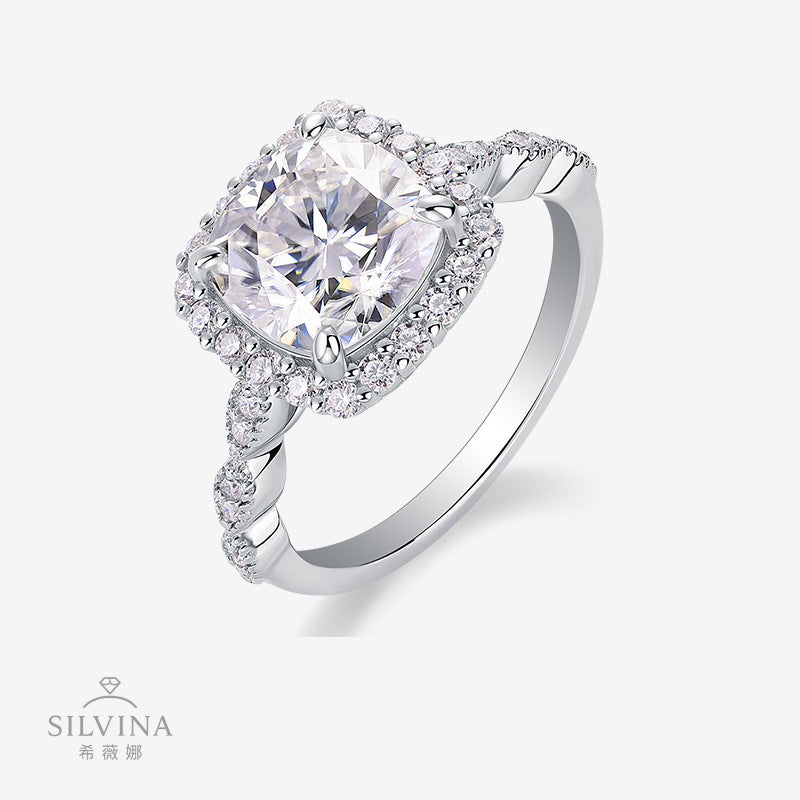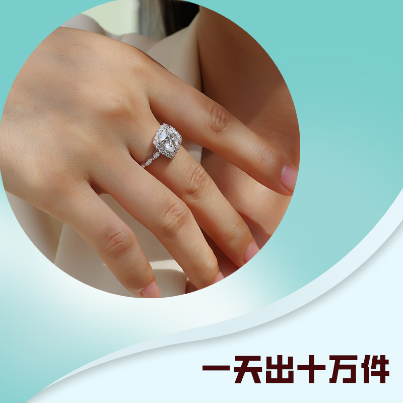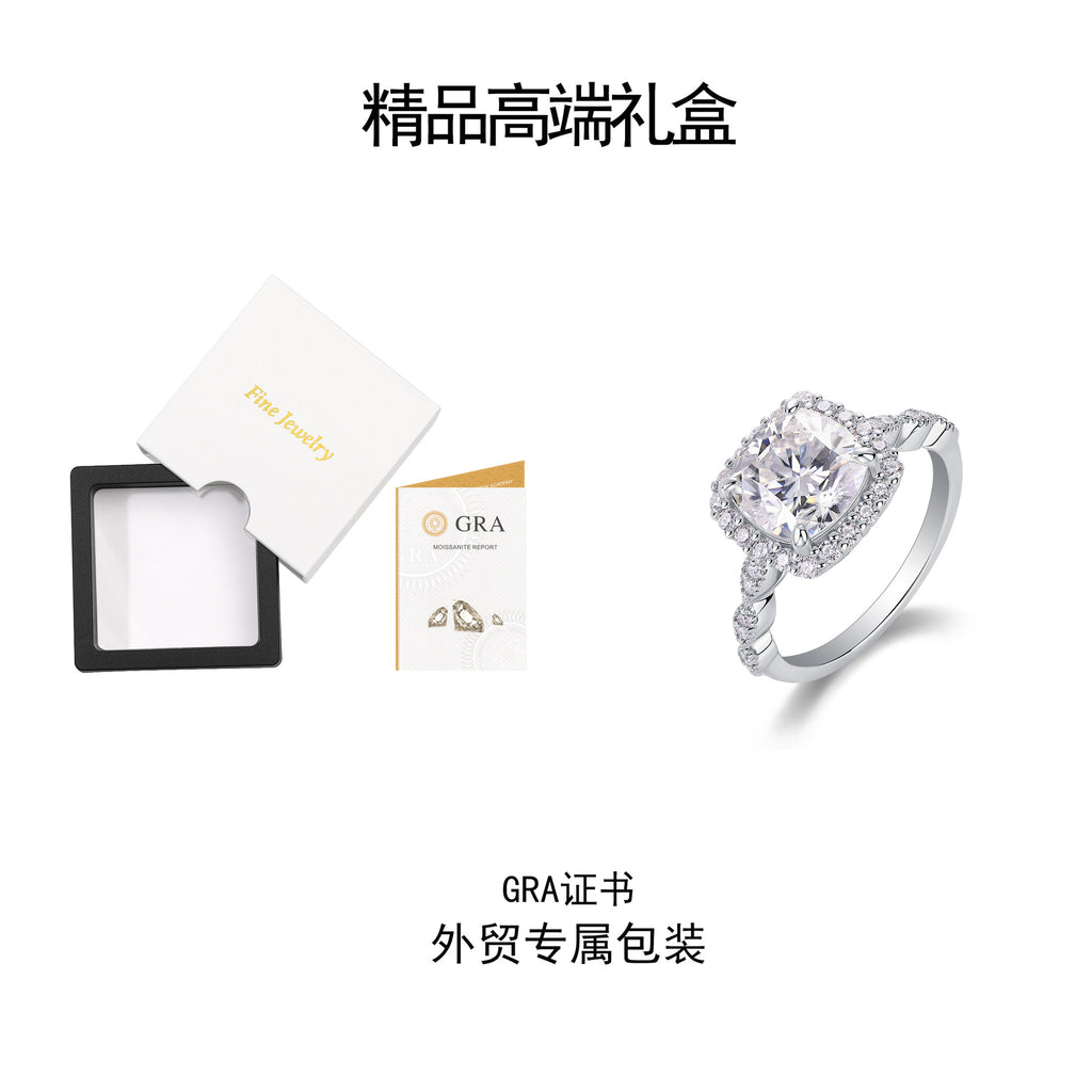 欧美跨境带证书闭口莫桑石d色 S925银莫桑钻2.5克拉公主方肥戒银