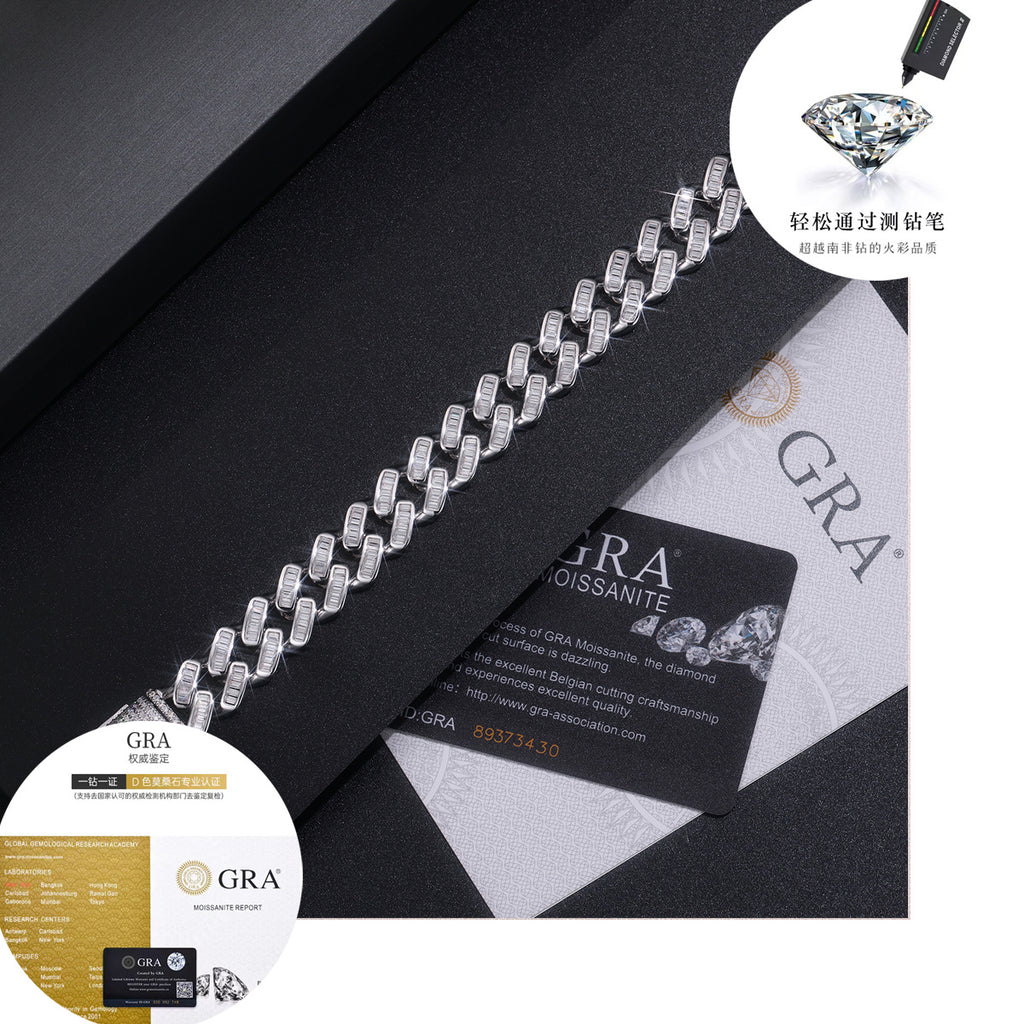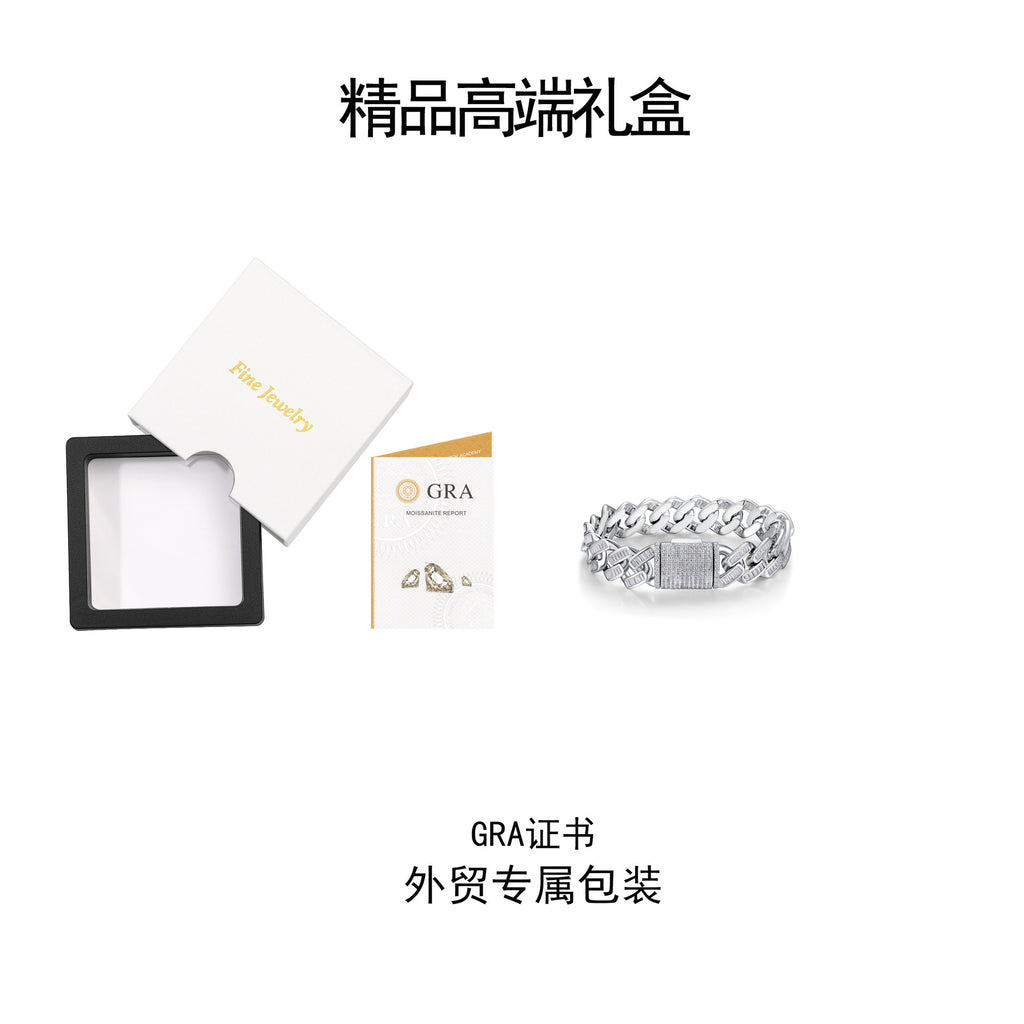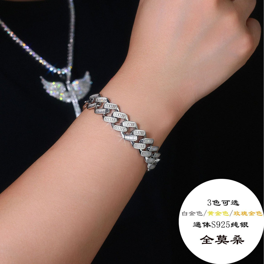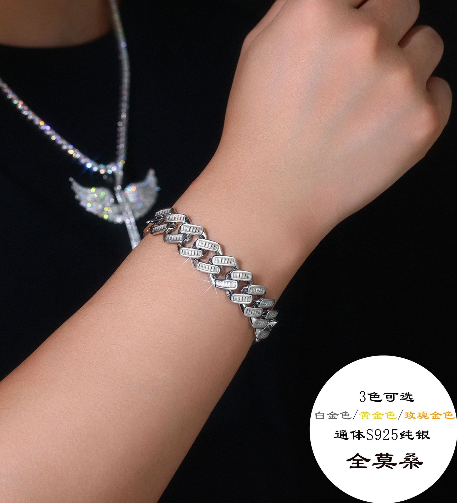 欧美跨境热卖新款嘻哈手链S925纯银D色莫桑石简约高级感男士手饰