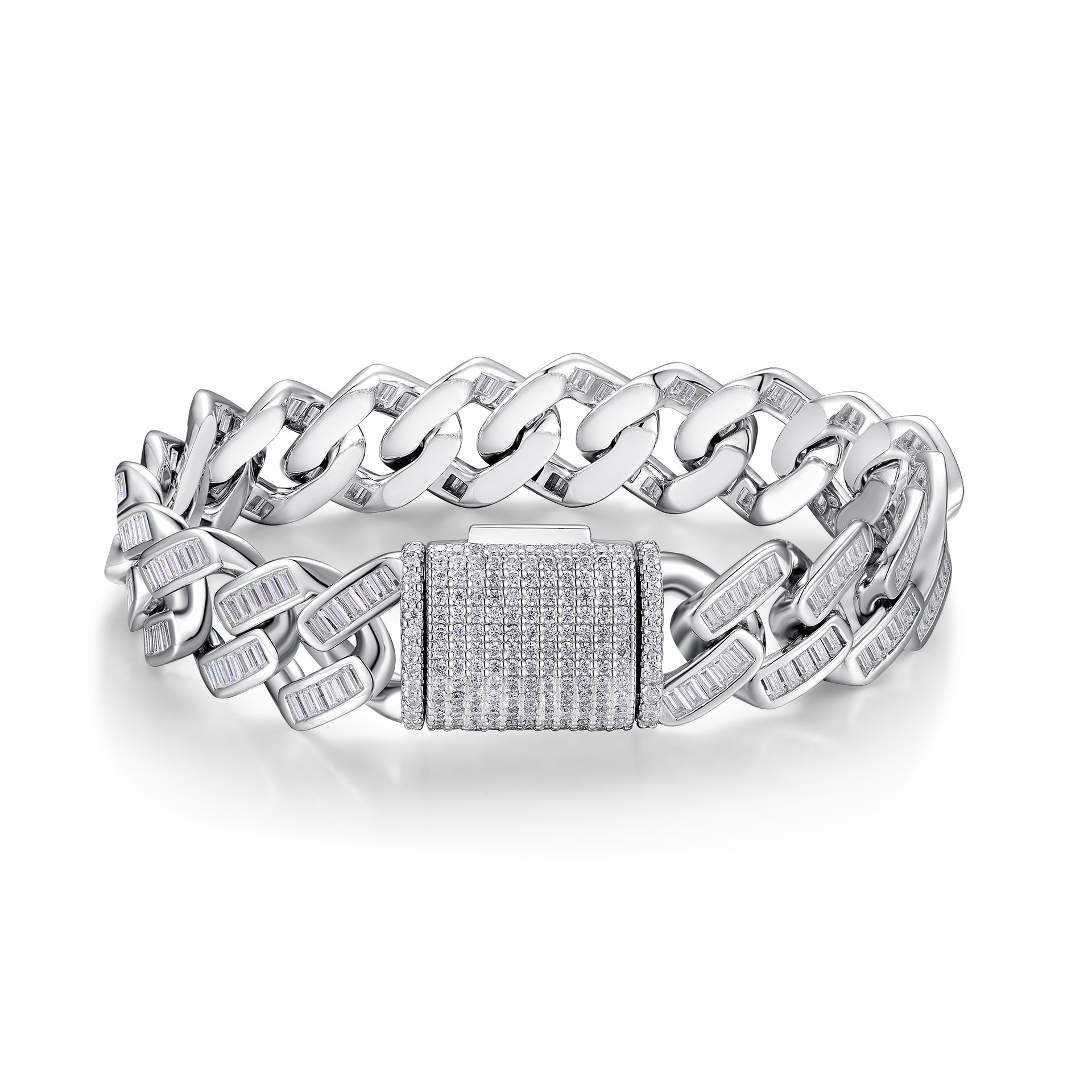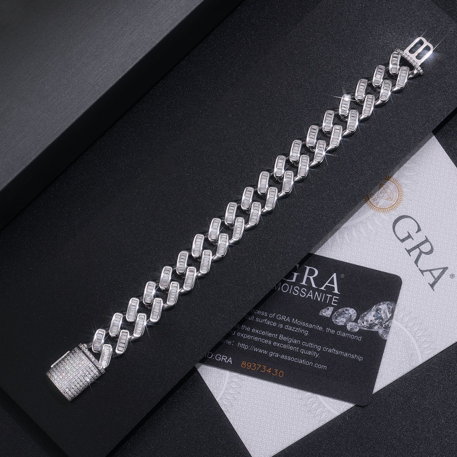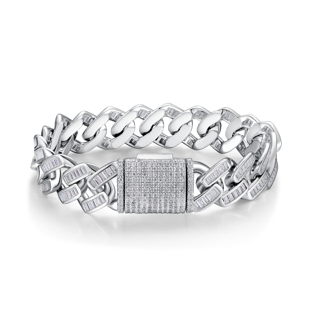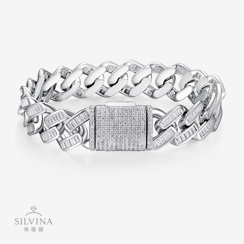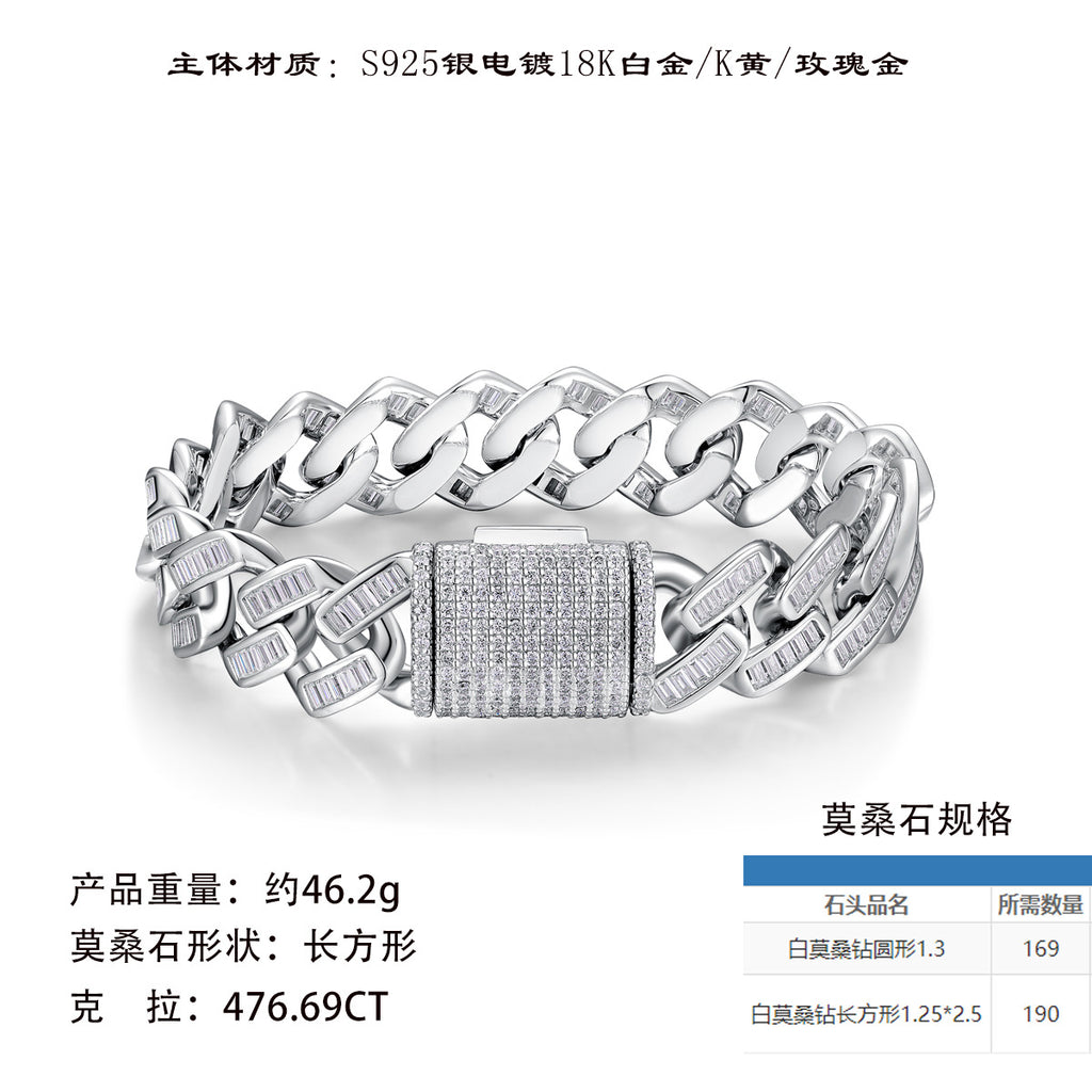 欧美跨境热卖新款嘻哈手链S925纯银D色莫桑石简约高级感男士手饰