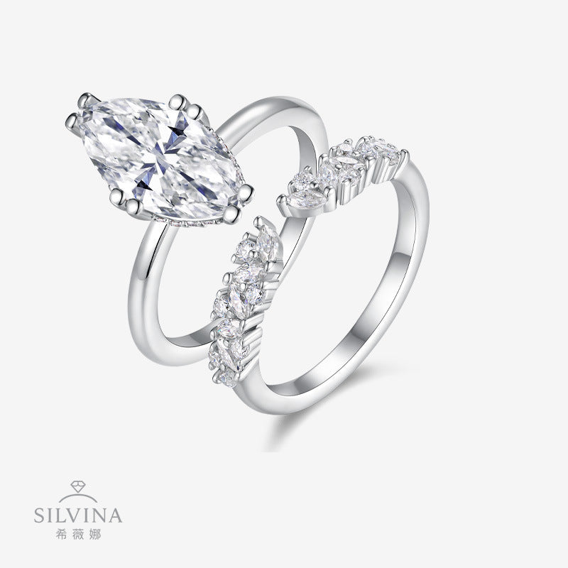 欧美跨境亚马逊流苏套戒电镀白金色925纯银莫桑石叠戴婚戒女