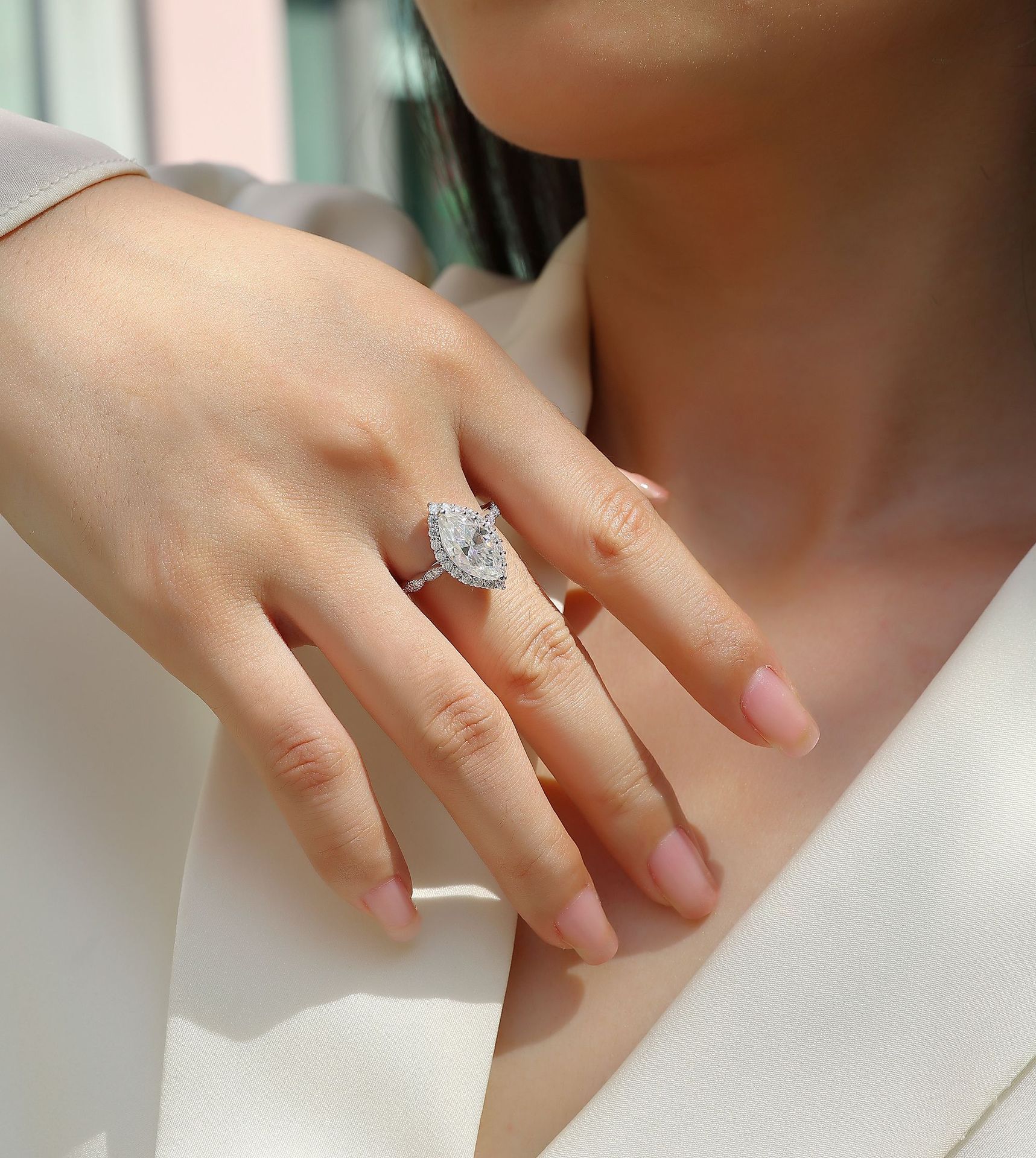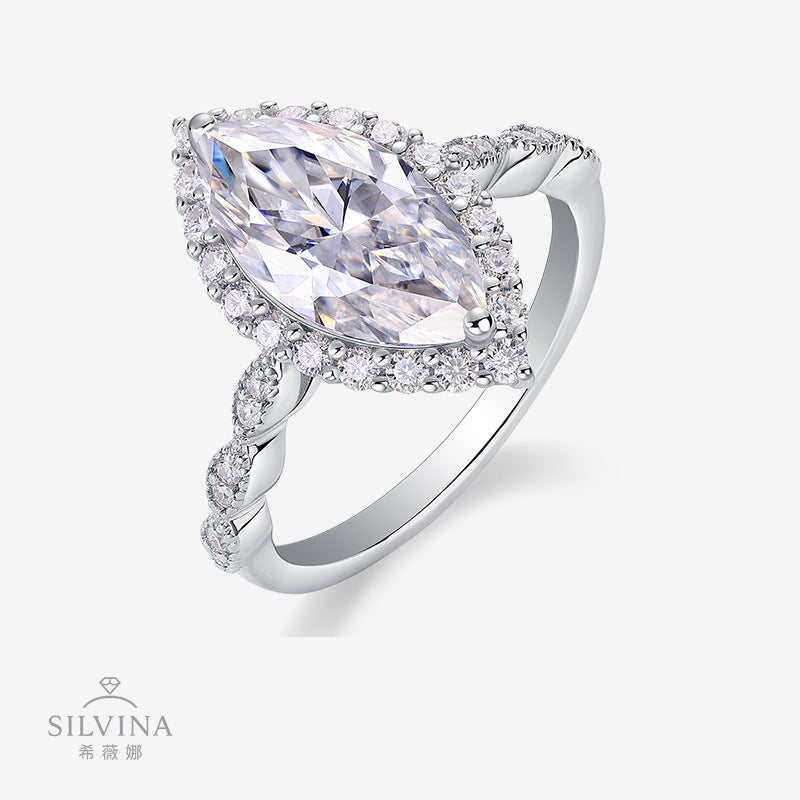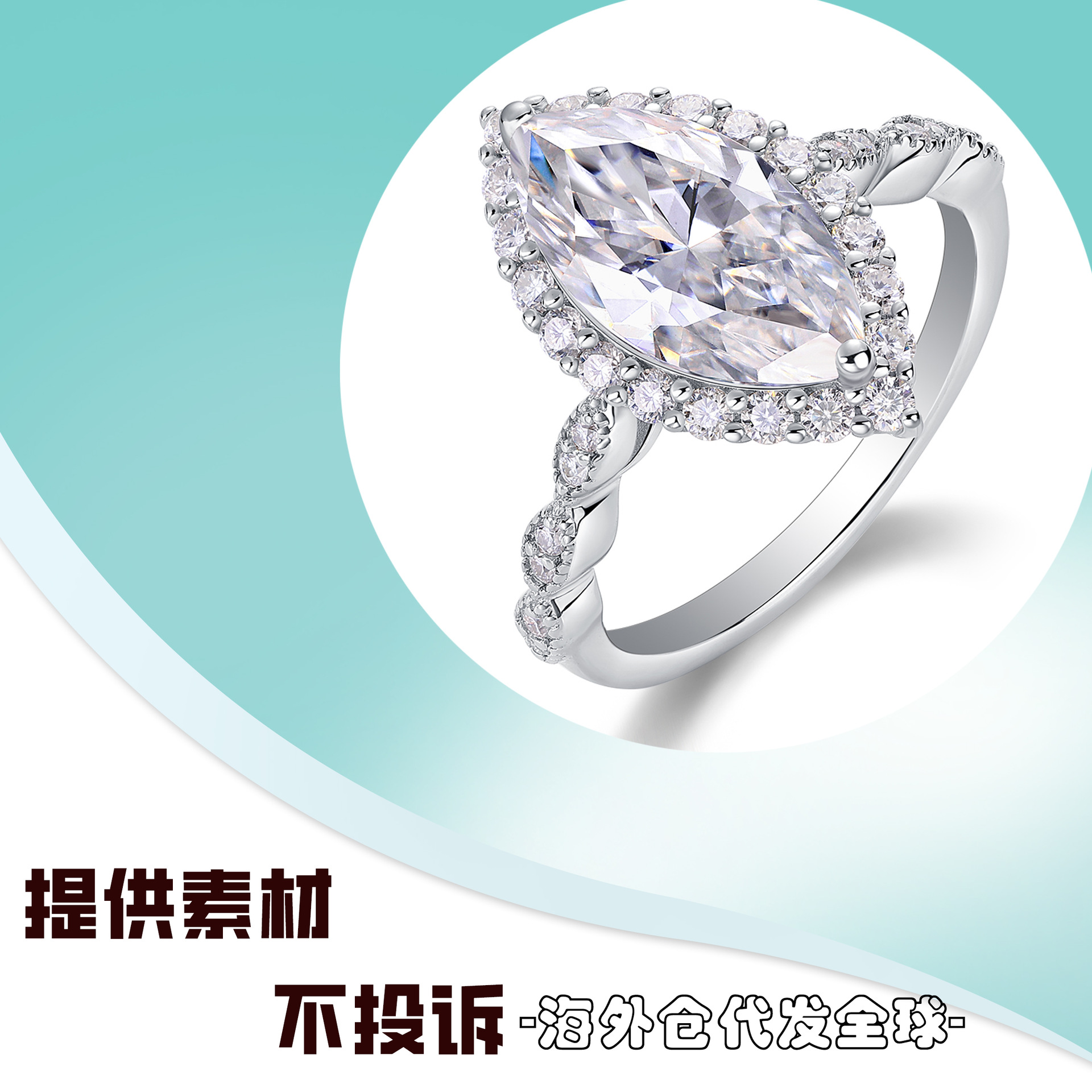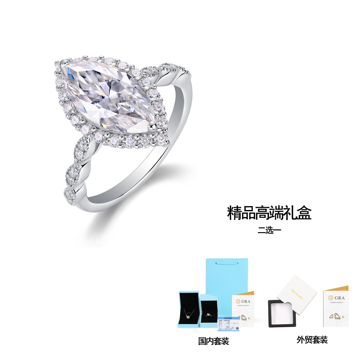 欧美跨境莫桑钻女士戒指 戒指女ins马眼女戒S925银D色莫桑钻VVS1