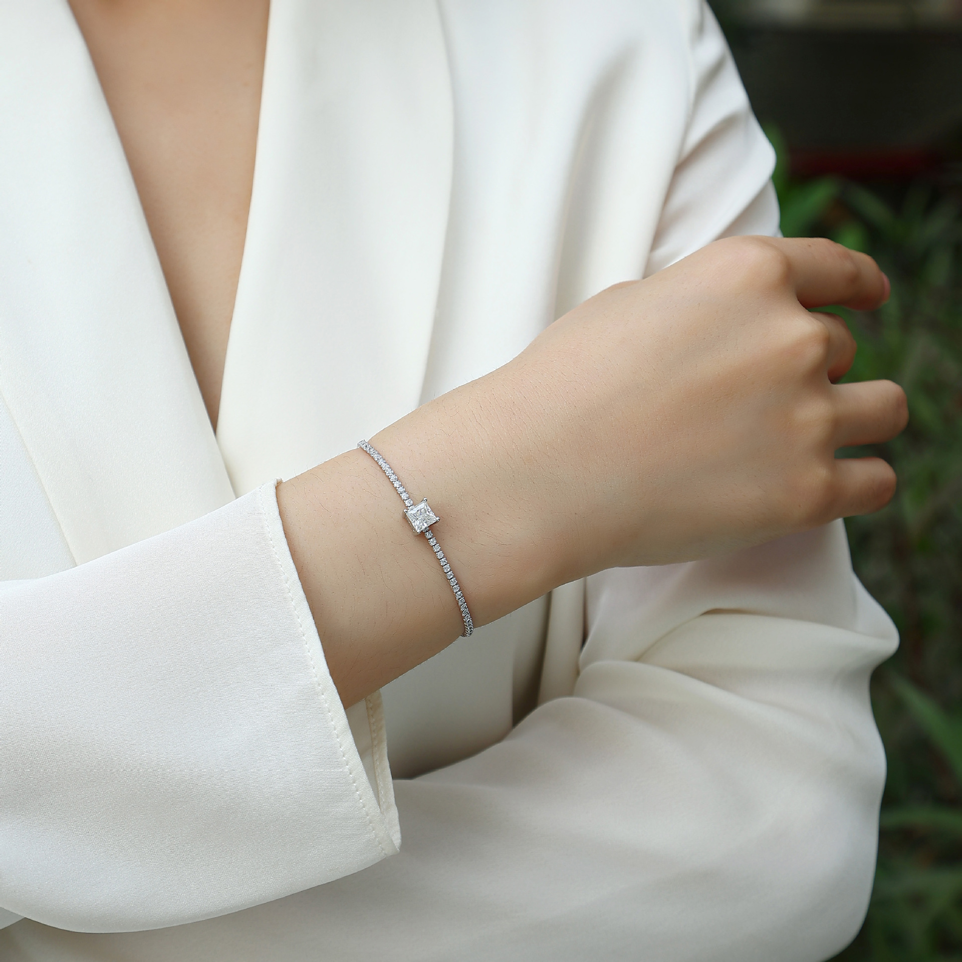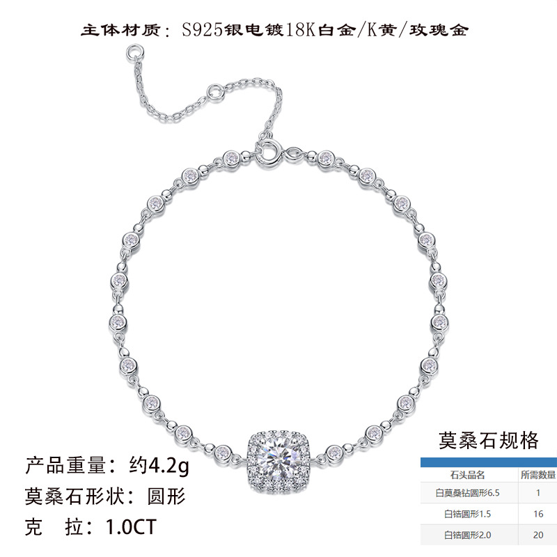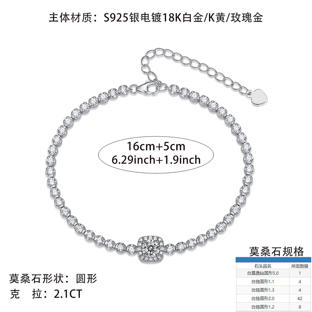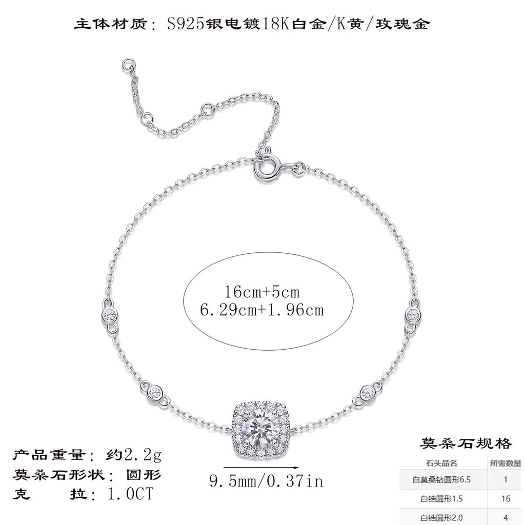 亚马逊热卖正品纯银镶莫桑首饰设计高级感送女友方糖时尚手链女士