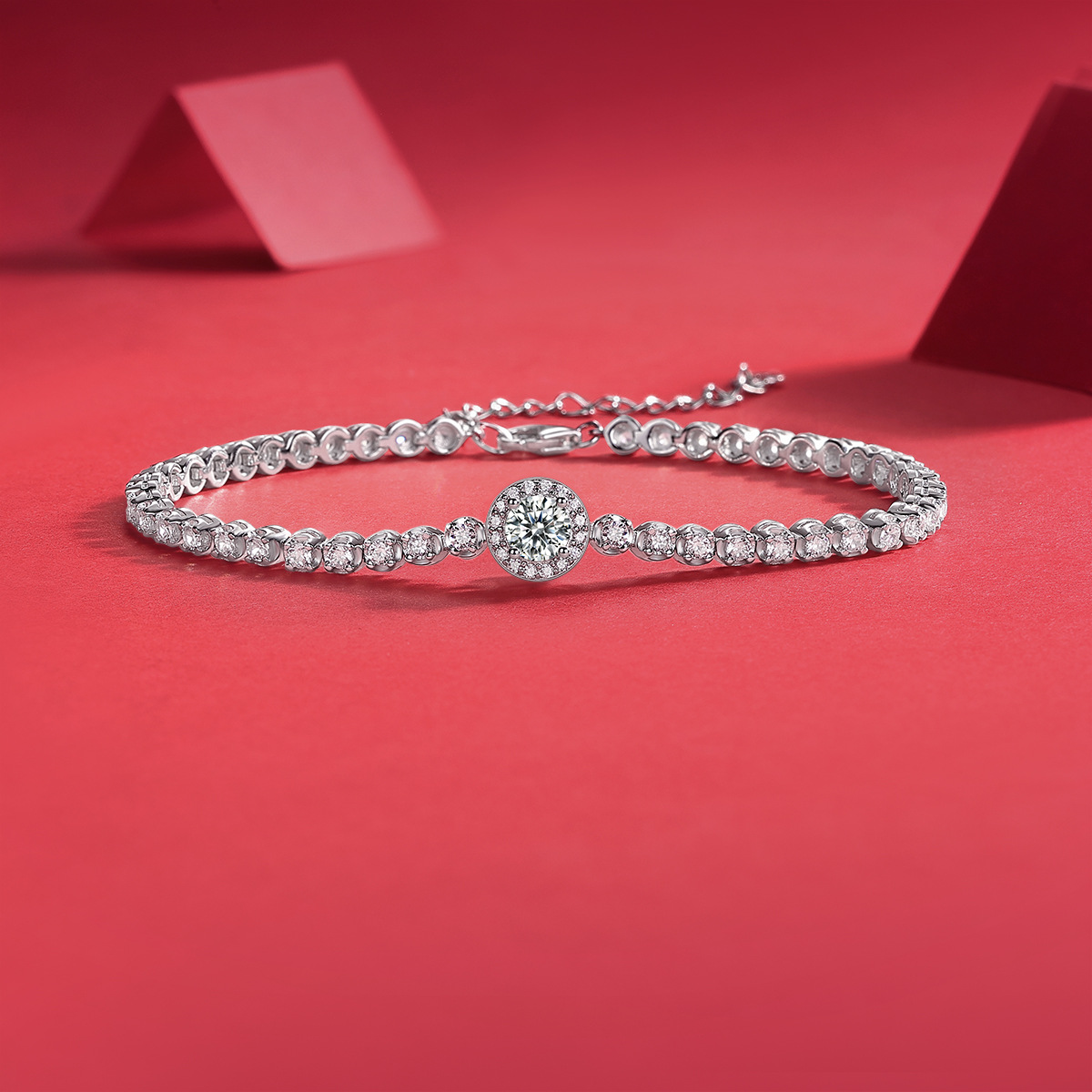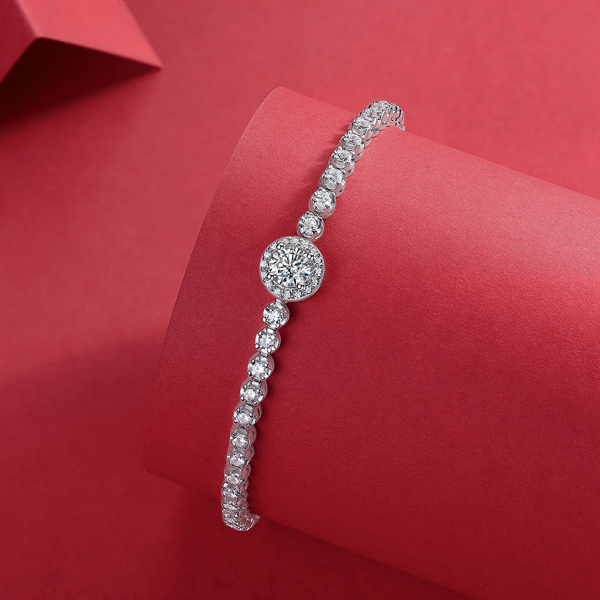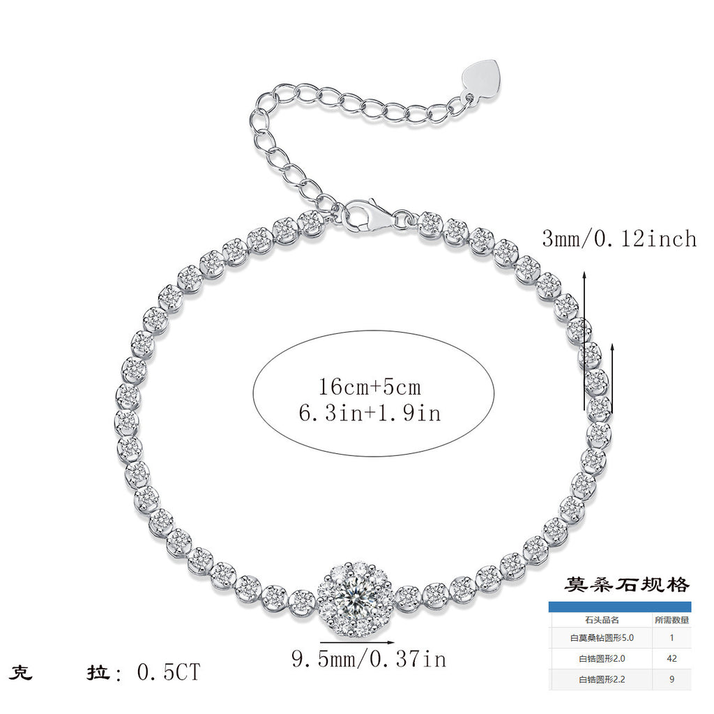 亚马逊热卖正品纯银镶莫桑首饰设计高级感送女友方糖时尚手链女士