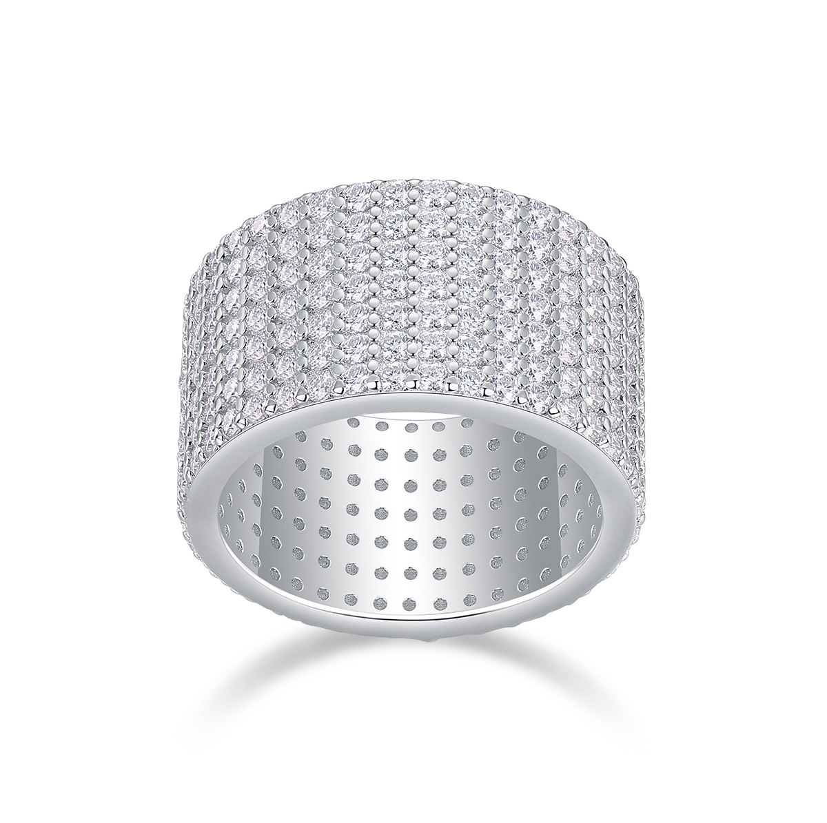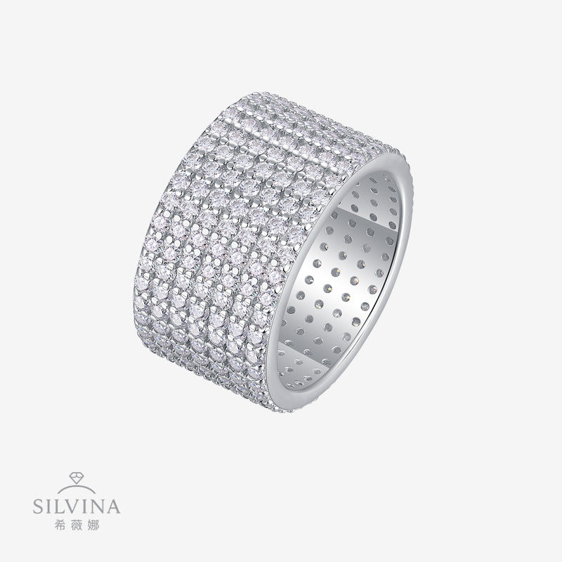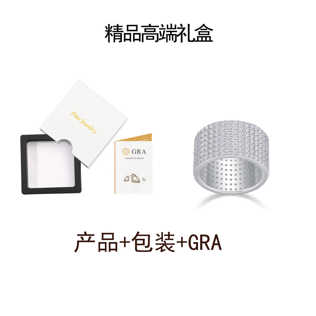 满圈豪镶纯银电镀白金豪镶戒指莫桑石闭口纯手工制作高级轻奢戒指