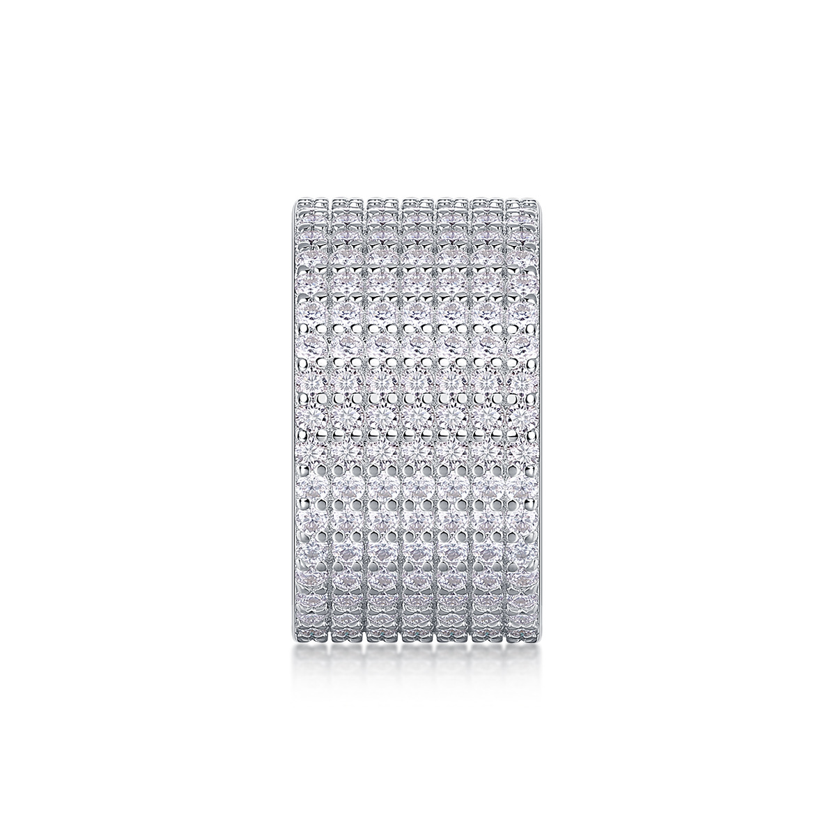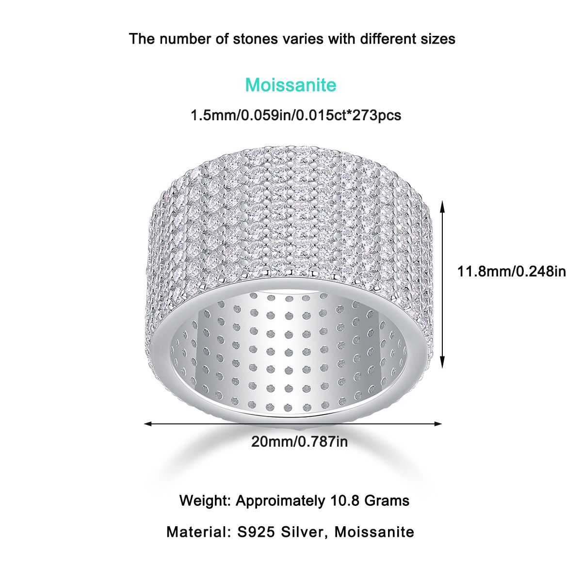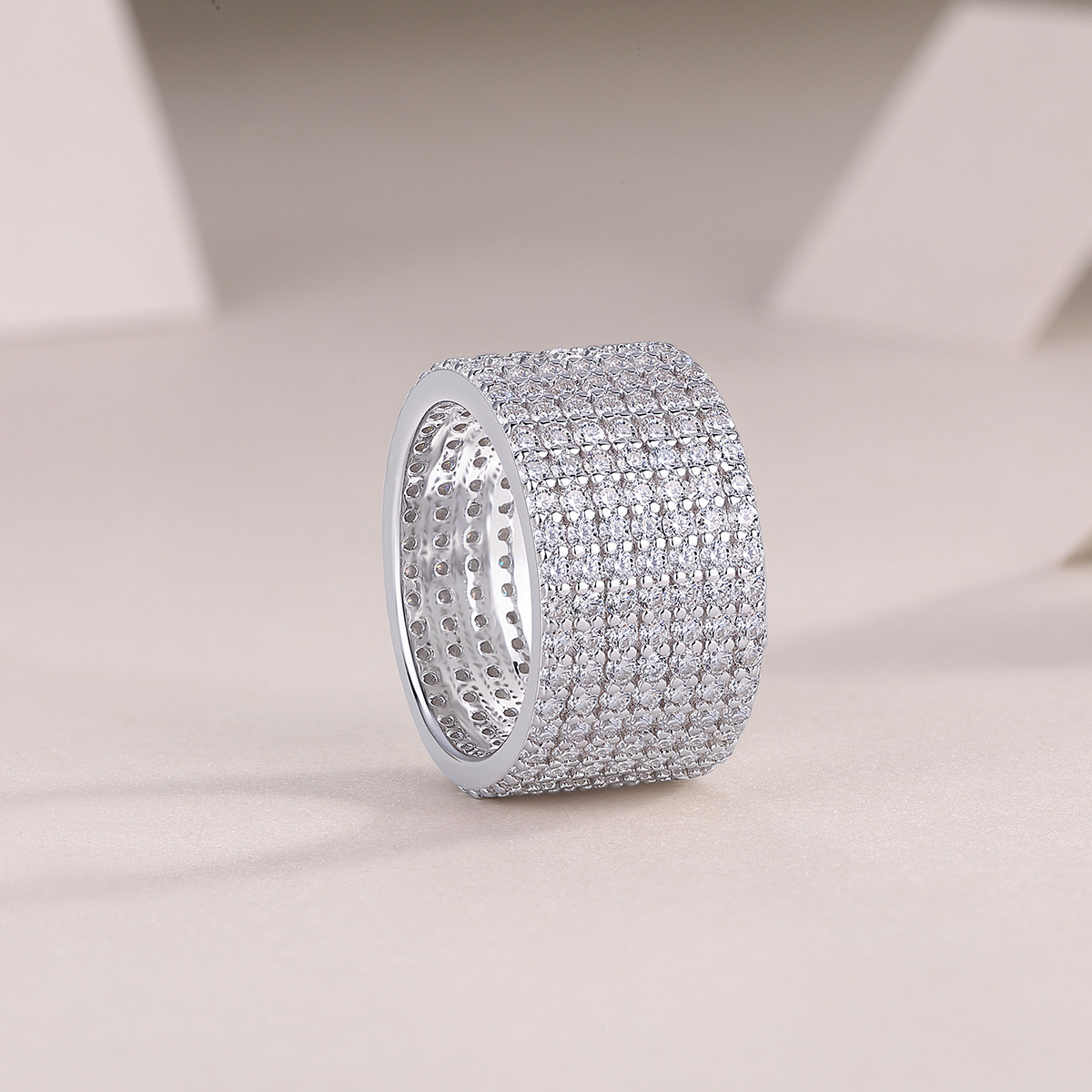 满圈豪镶纯银电镀白金豪镶戒指莫桑石闭口纯手工制作高级轻奢戒指