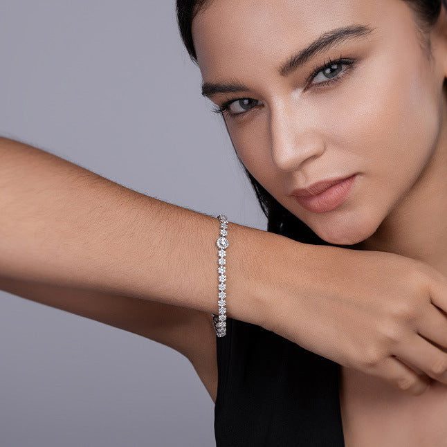 跨境热销多尺寸时尚手链S925银轻奢款情人节礼物订婚定制网球手链