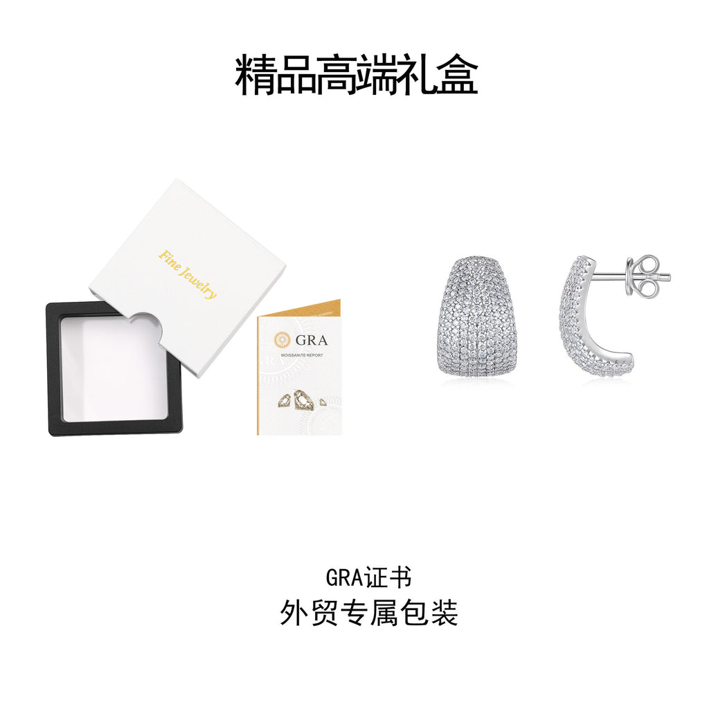跨境热销欧美亚马逊耳饰全莫桑石镶嵌S925纯银工厂订制现货耳坠女