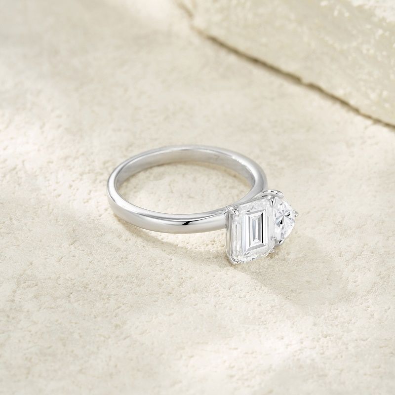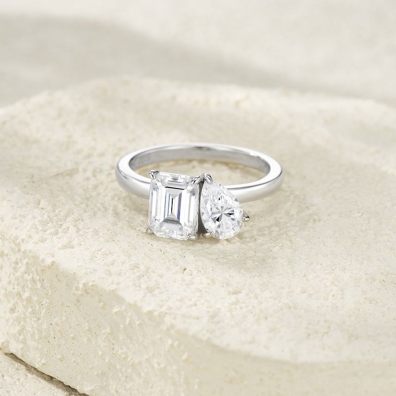 热销S925纯银异形莫桑石戒指祖母绿切时尚百搭轻奢风女戒