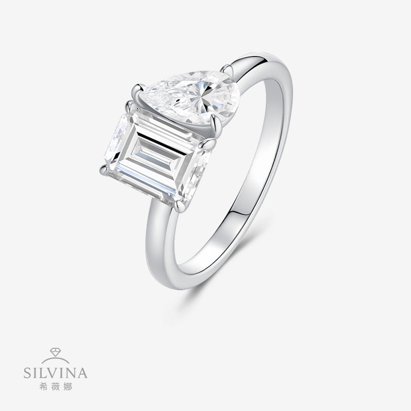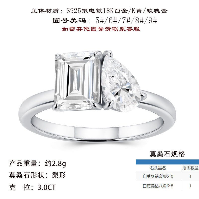 S925银(全莫桑)八角6*8mm/梨形5*8mm戒指 / 美码5号 - ¥460.86