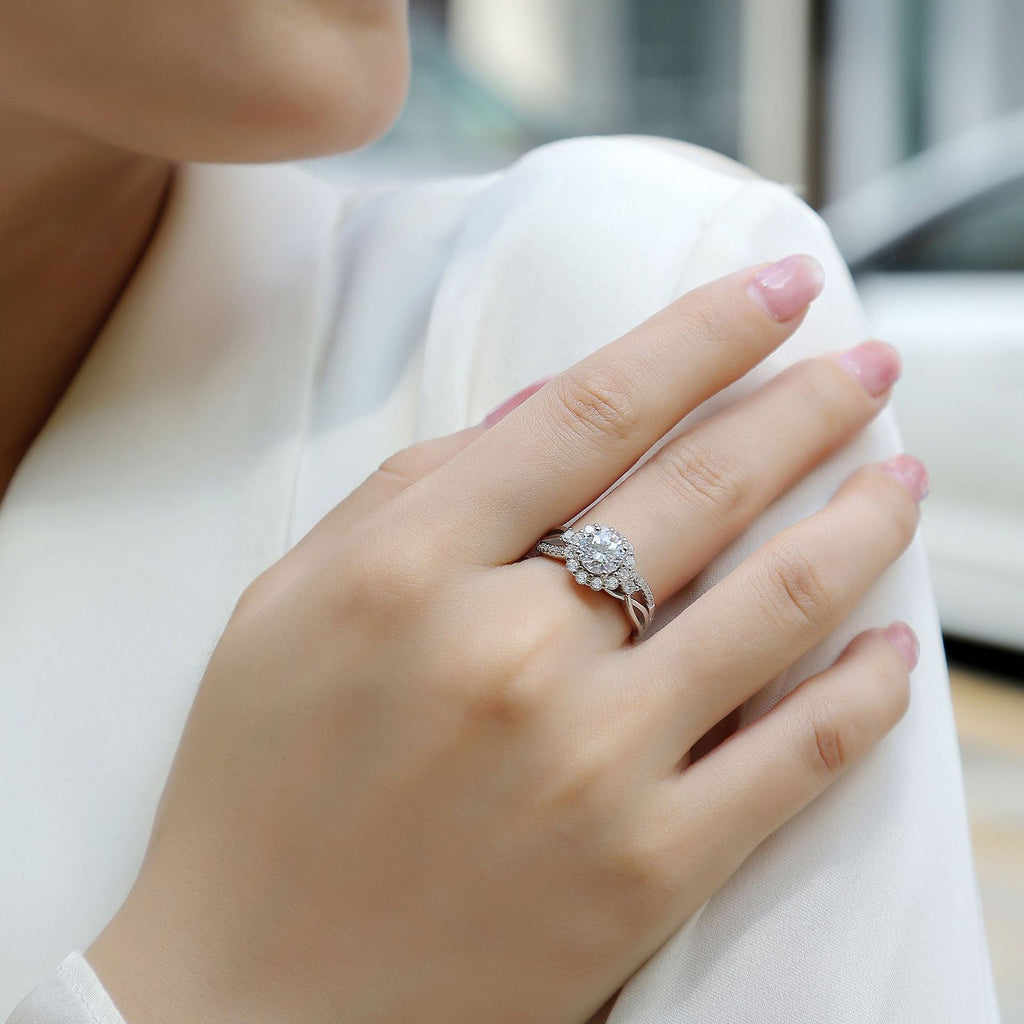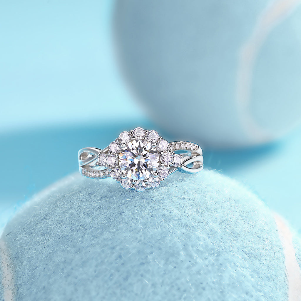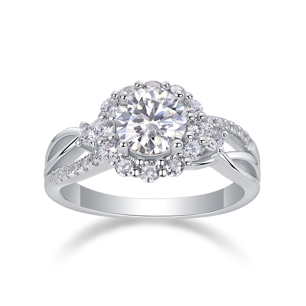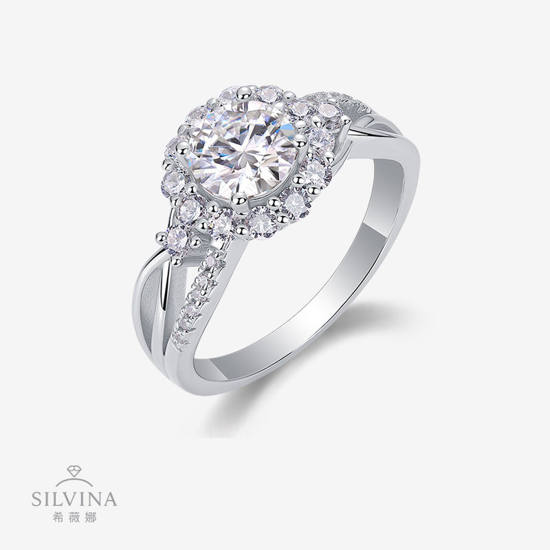 热销S925纯银戒指女莫桑石同款时尚镀白金婚戒女轻奢