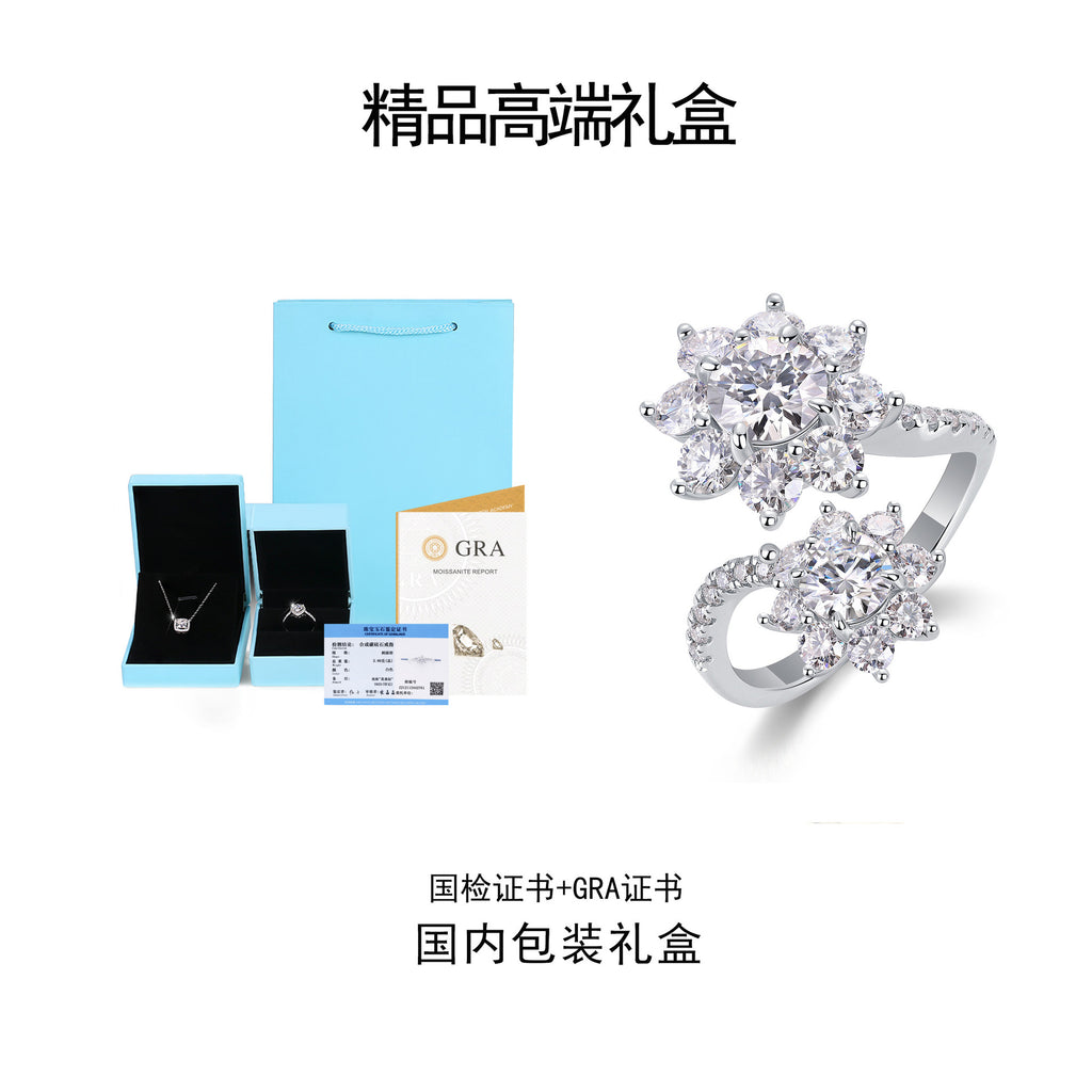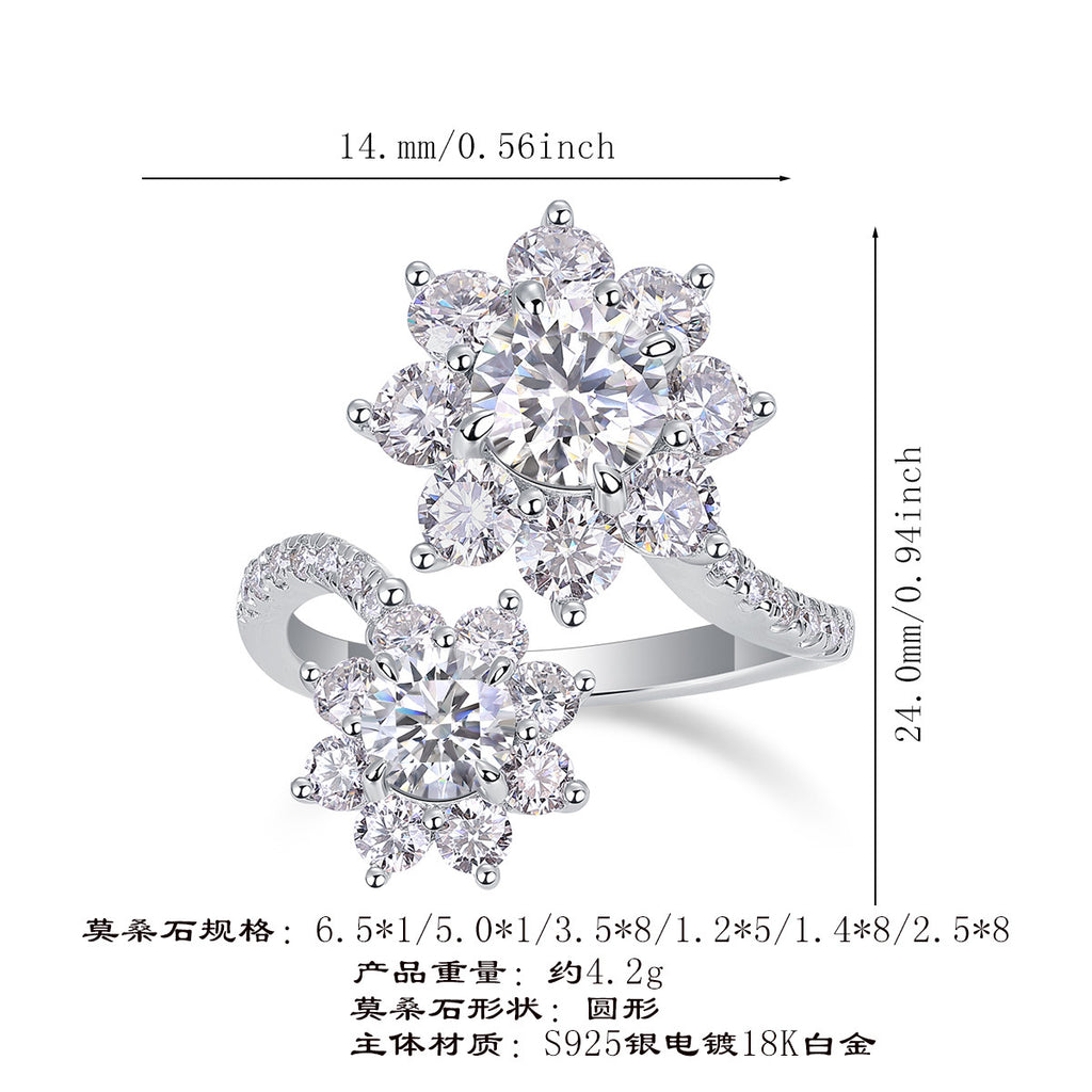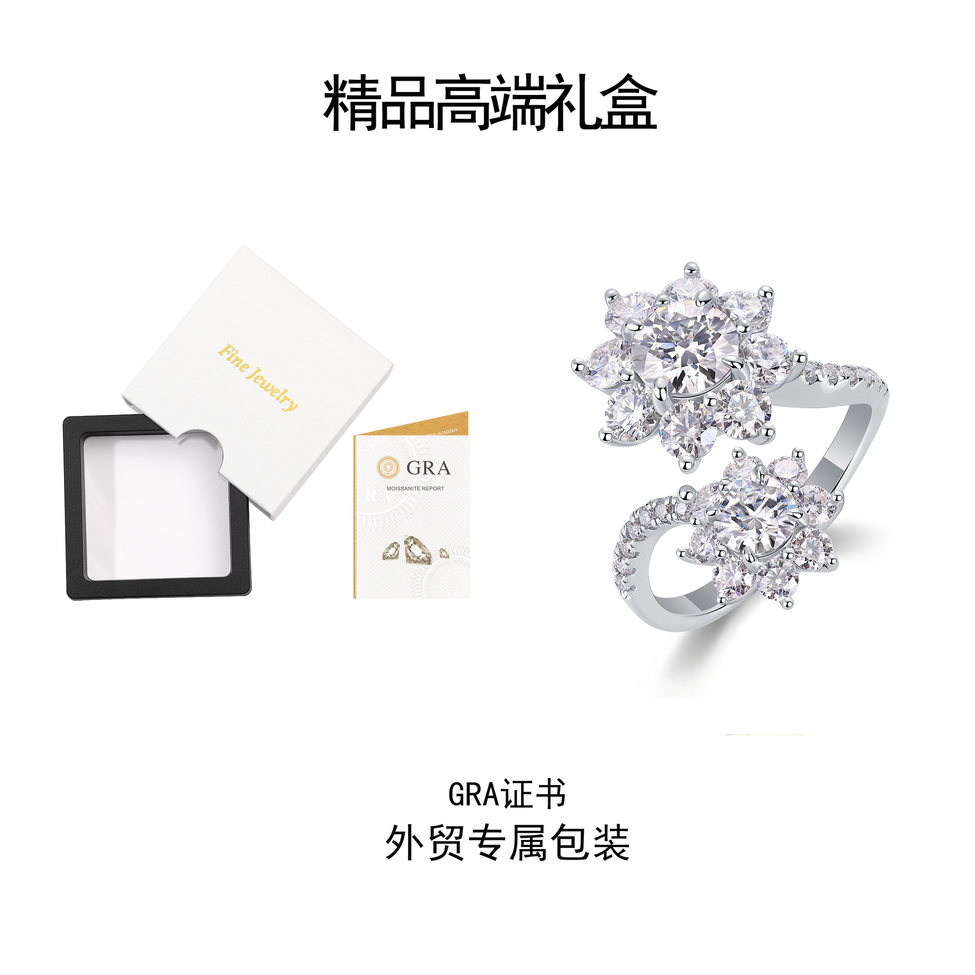 跨境亚马逊纯银925莫桑石戒指超时尚太阳花女生宴会高级感女戒