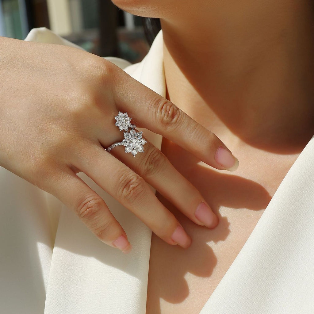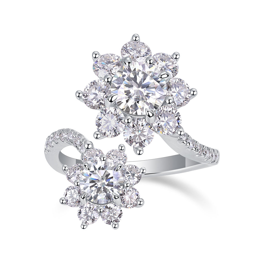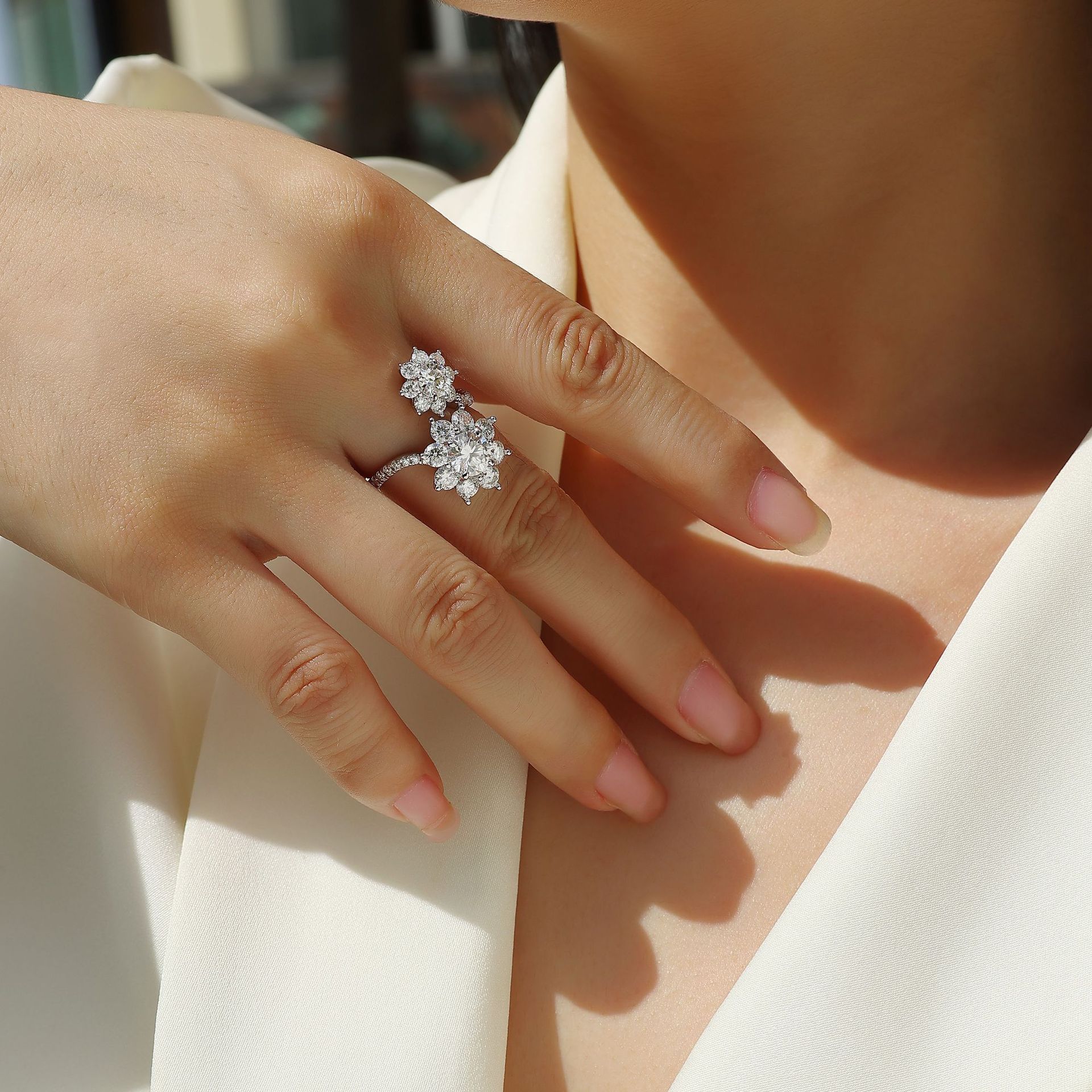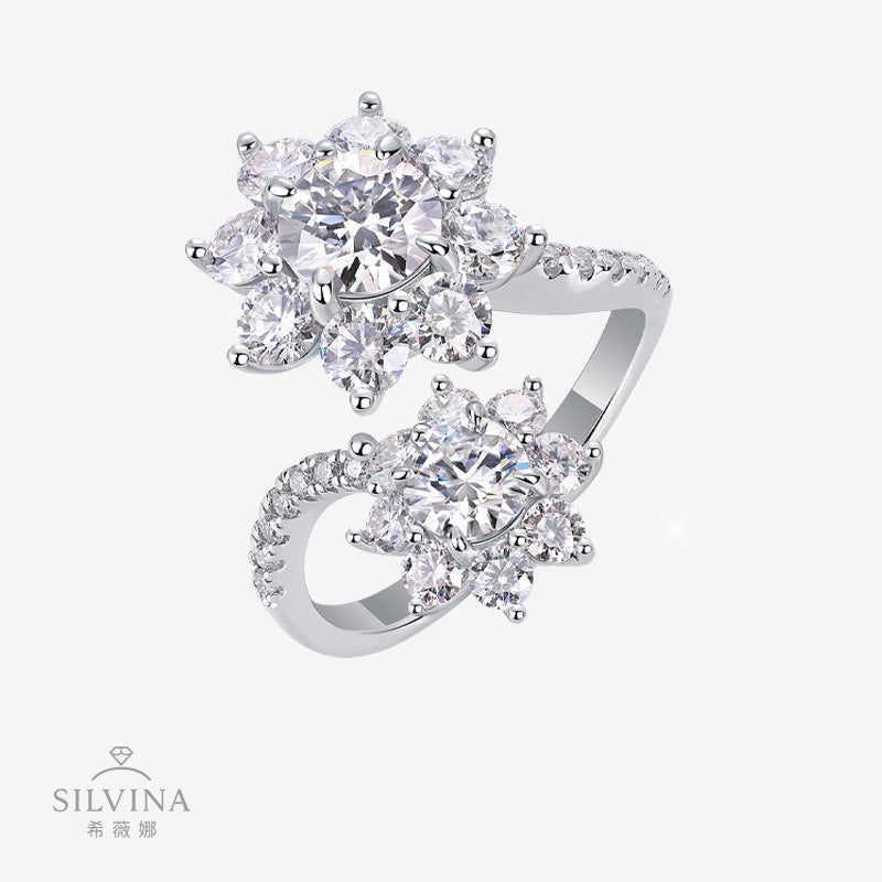跨境亚马逊纯银925莫桑石戒指超时尚太阳花女生宴会高级感女戒