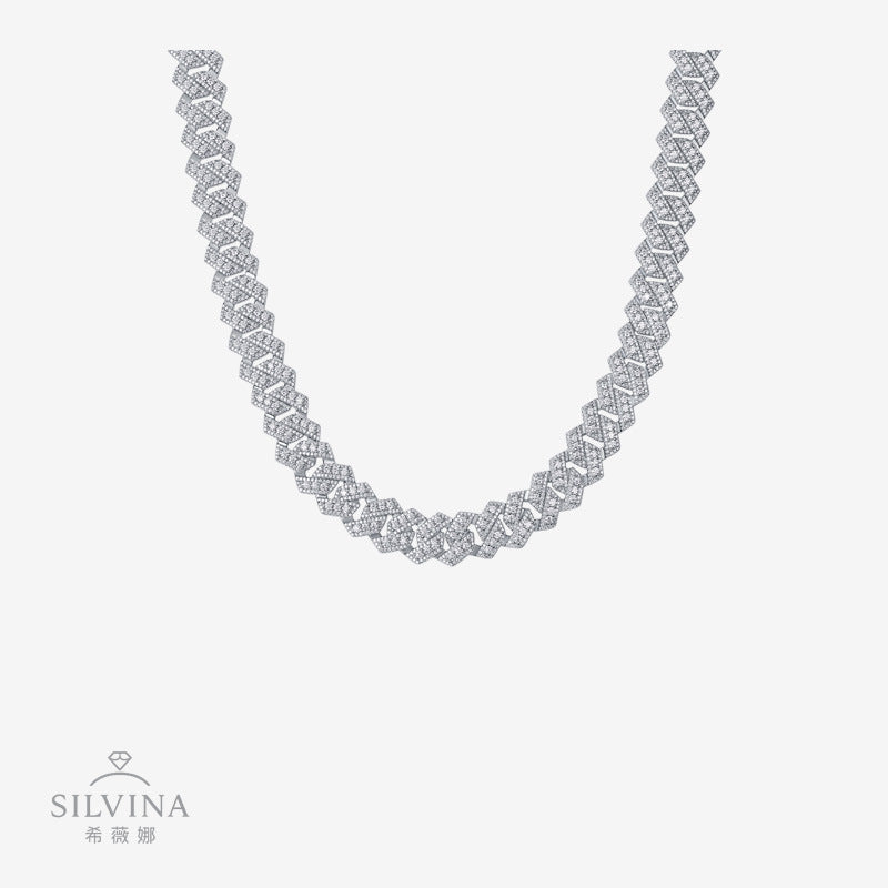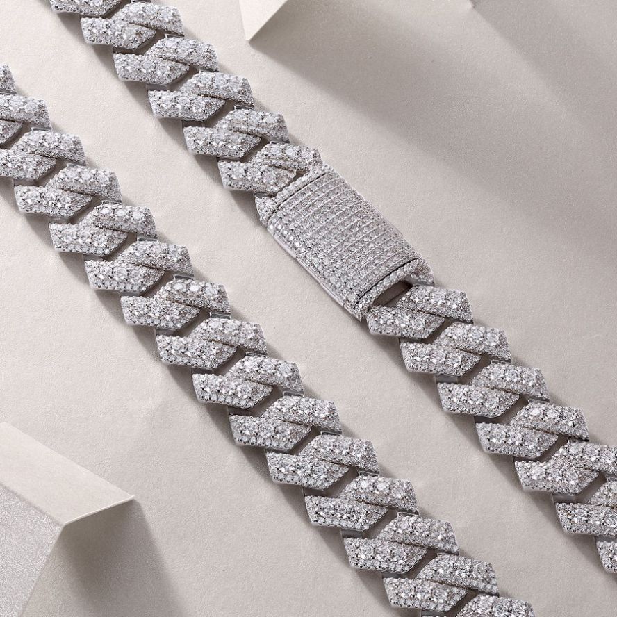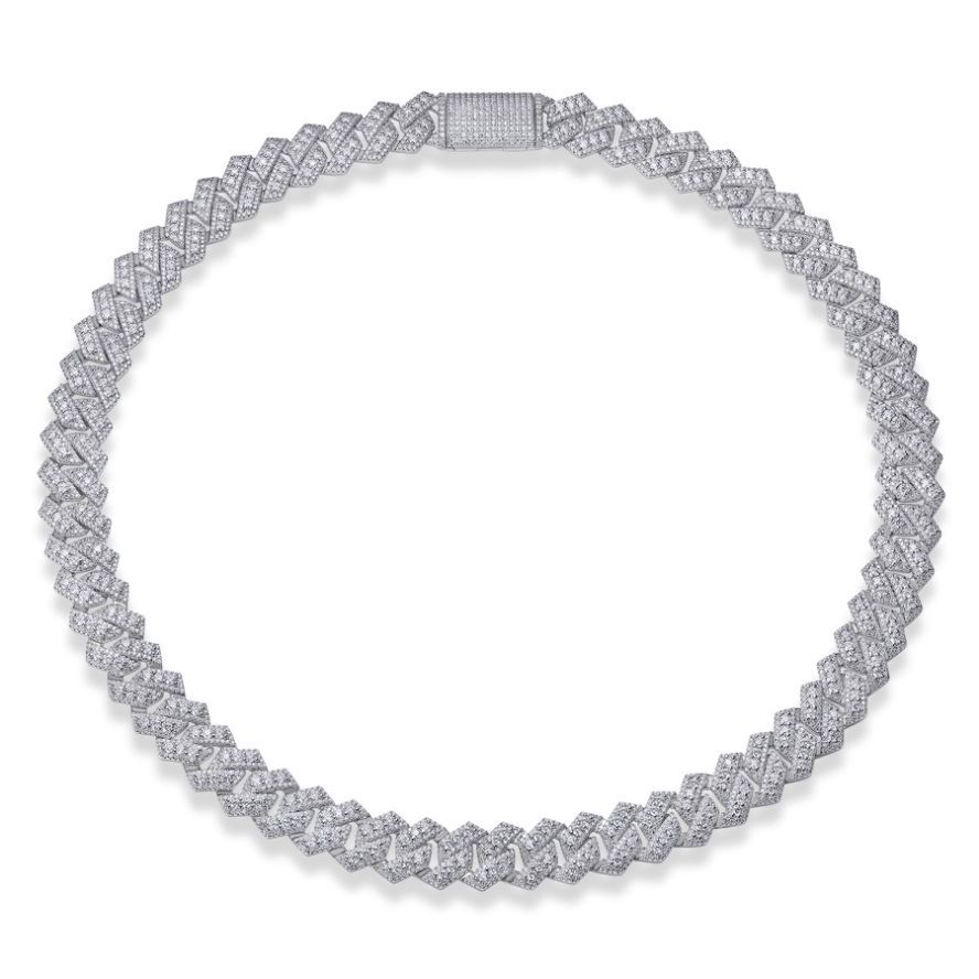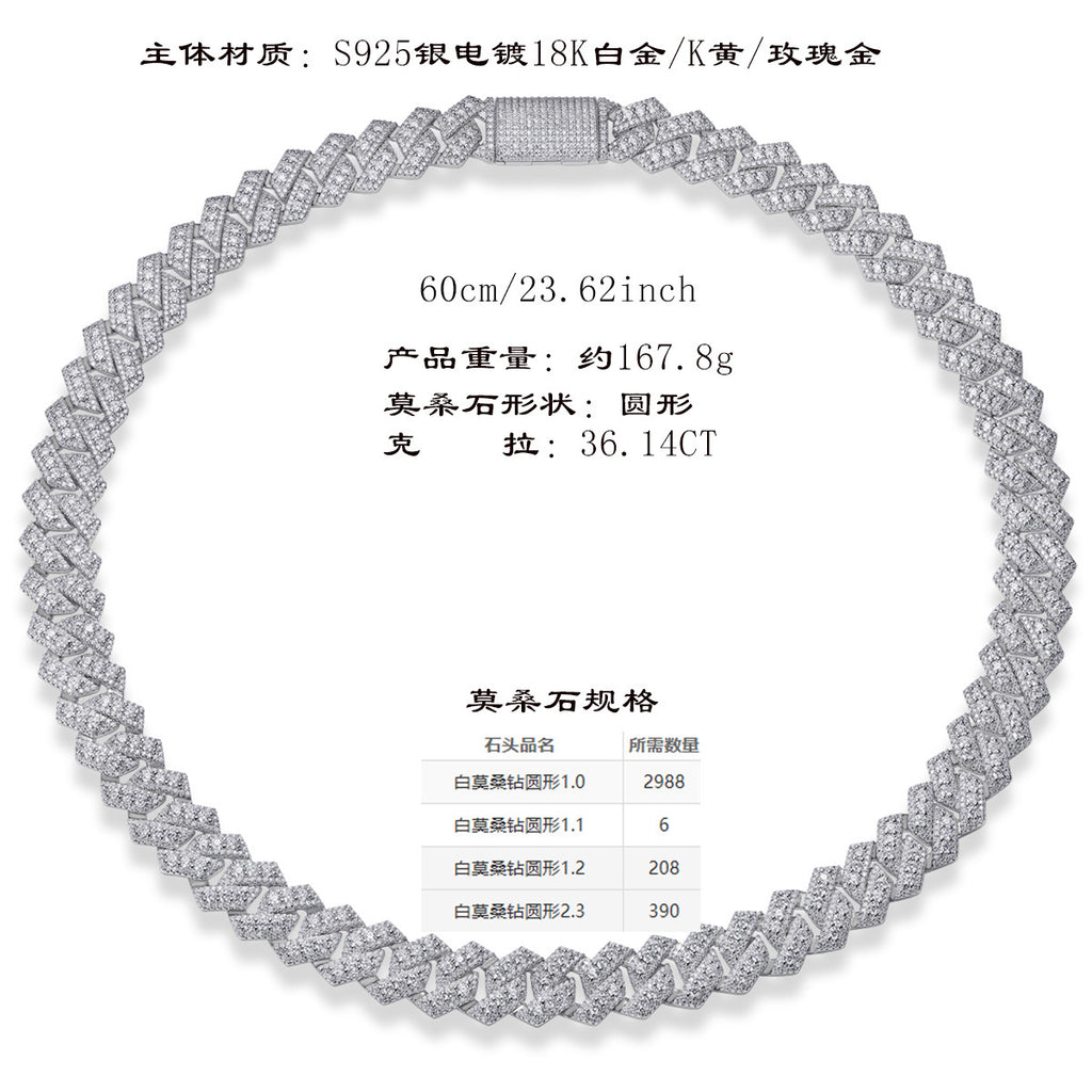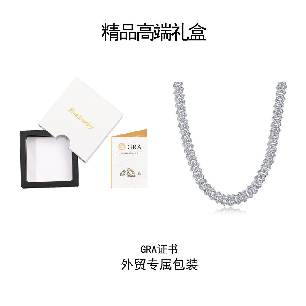 跨境亚马逊街头嘻哈大项链s925纯银莫桑石电镀白金古男生巴项链男