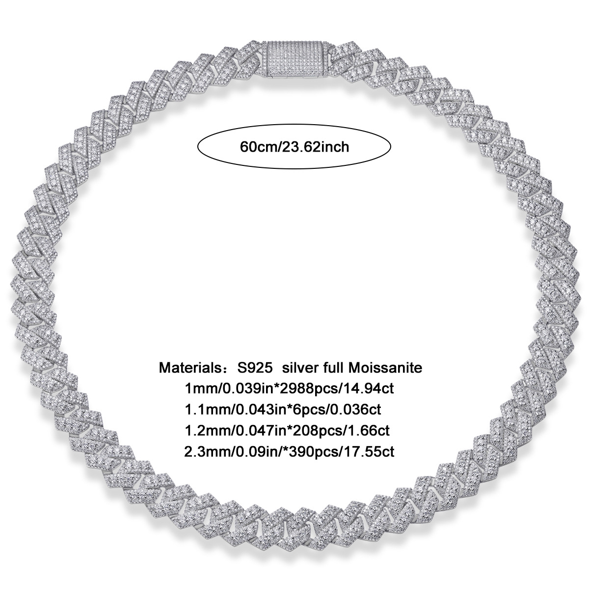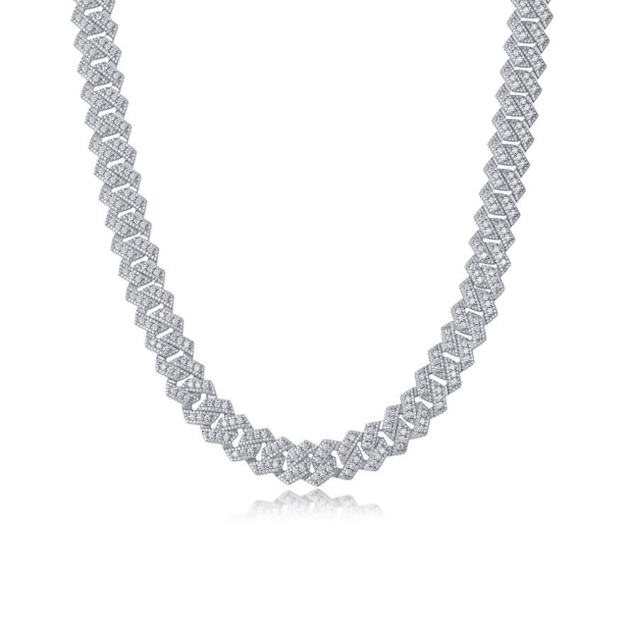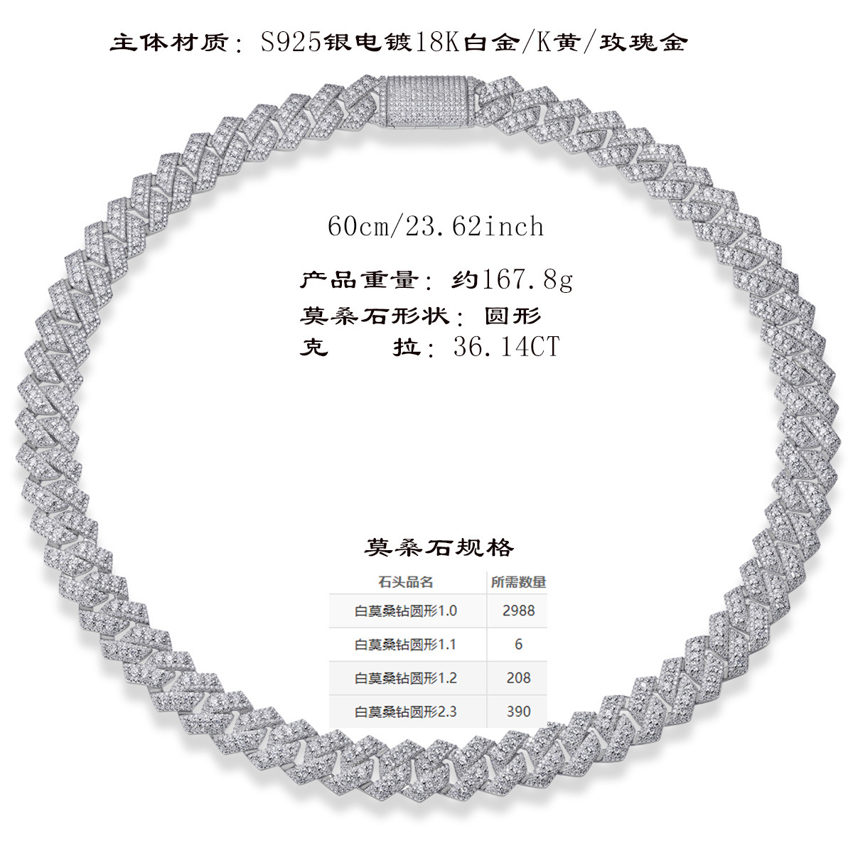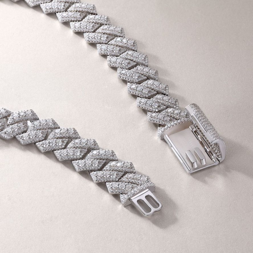 跨境亚马逊街头嘻哈大项链s925纯银莫桑石电镀白金古男生巴项链男