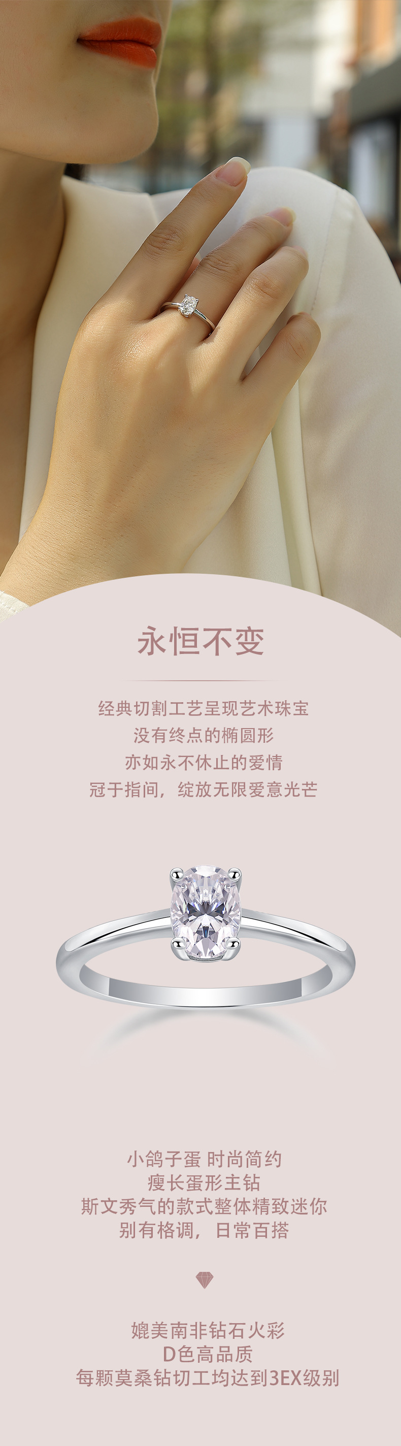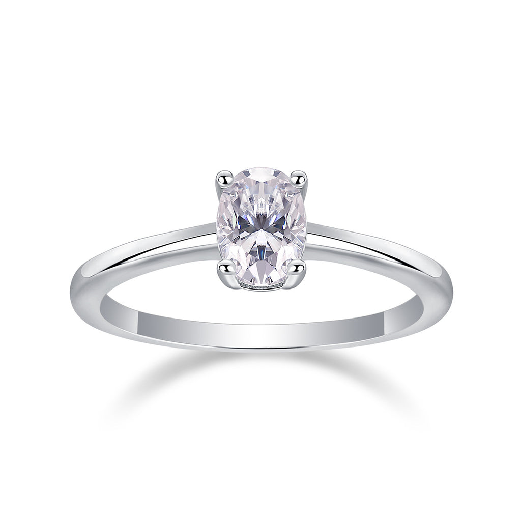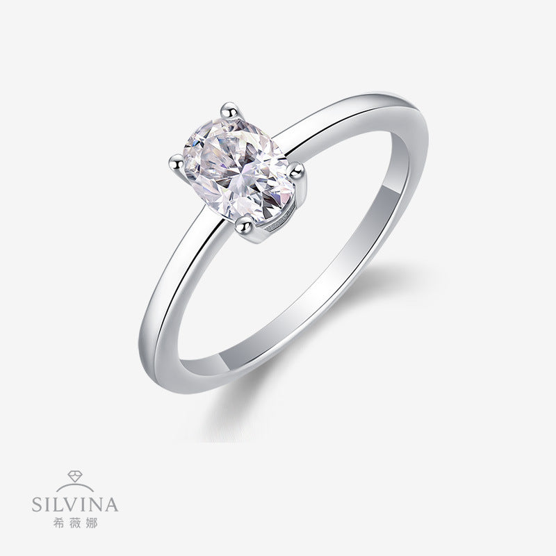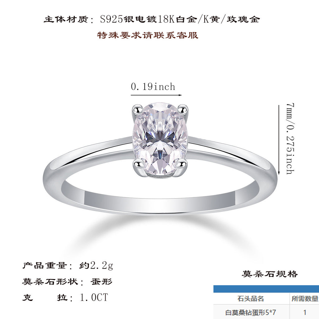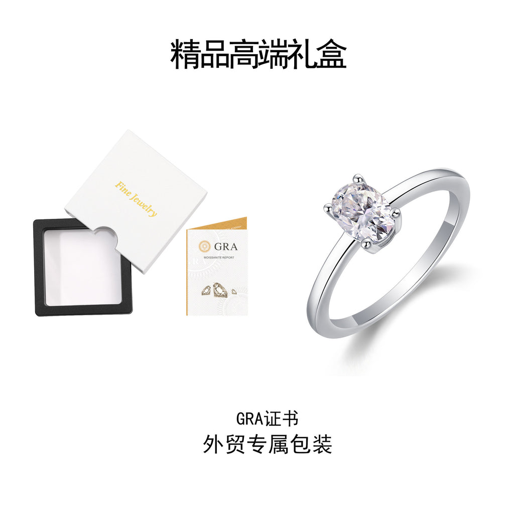 跨境亚马逊订婚礼物指圈925银蛋形莫桑石小众高级感轻奢风戒指女
