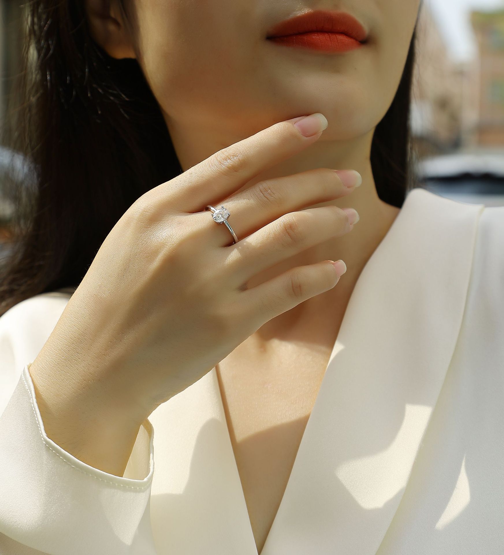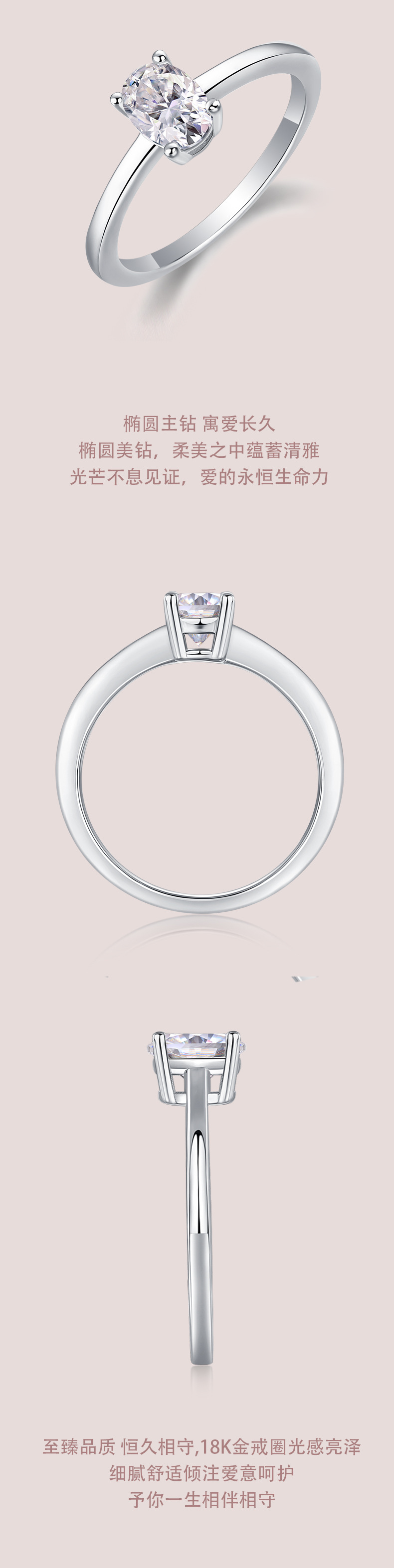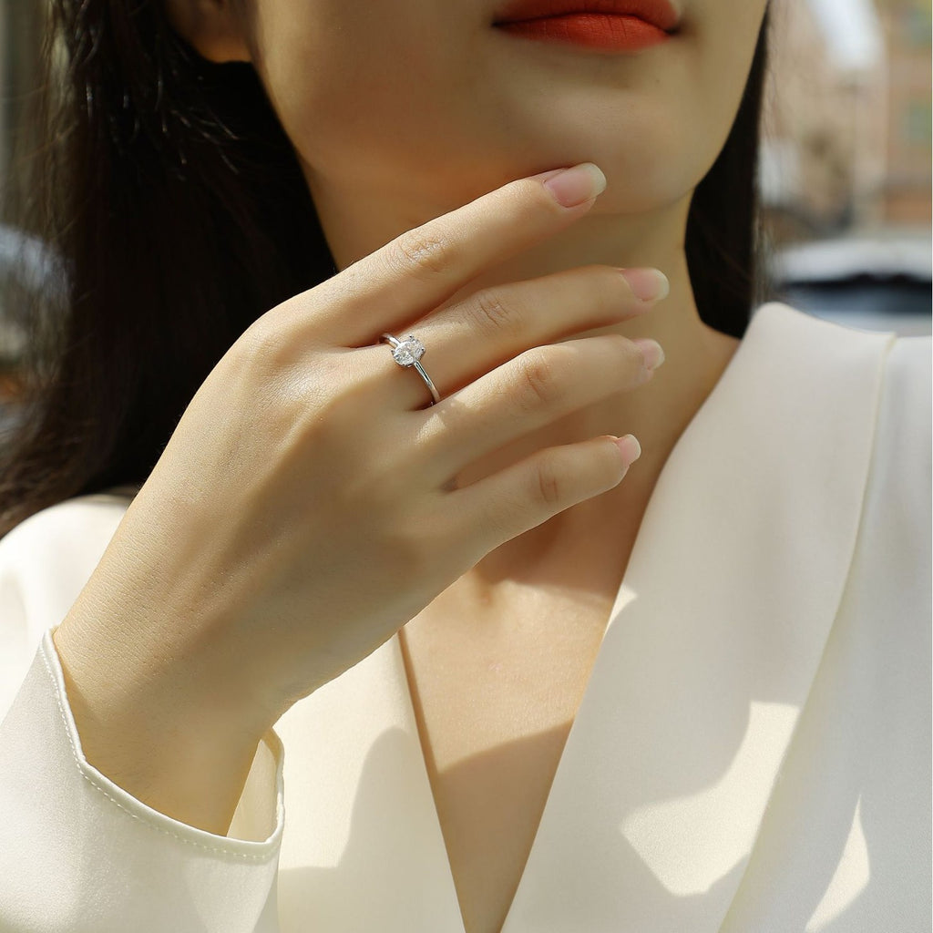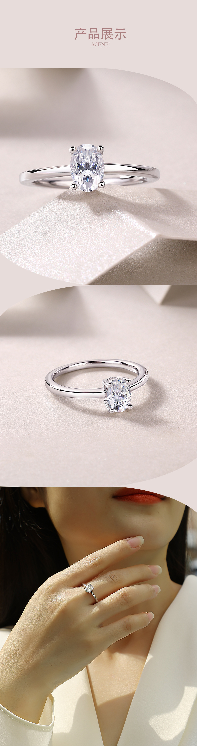 跨境亚马逊订婚礼物指圈925银蛋形莫桑石小众高级感轻奢风戒指女