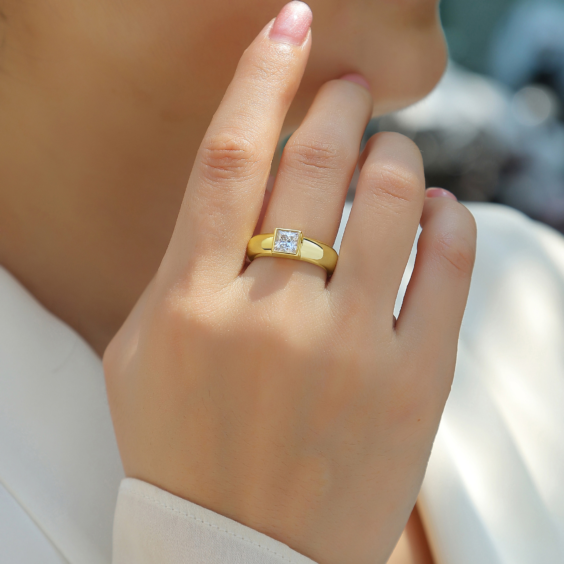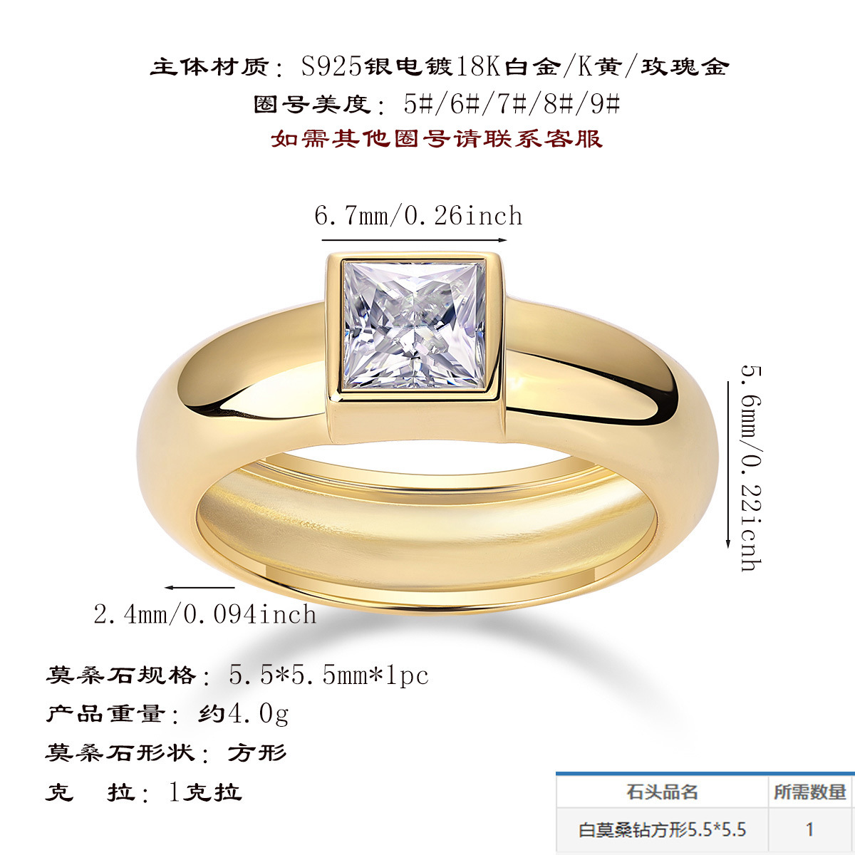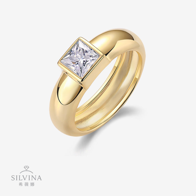 香槟星潮跨境Etsy直播热卖ins风女戒批发S925银镀18k黄莫桑石指环
