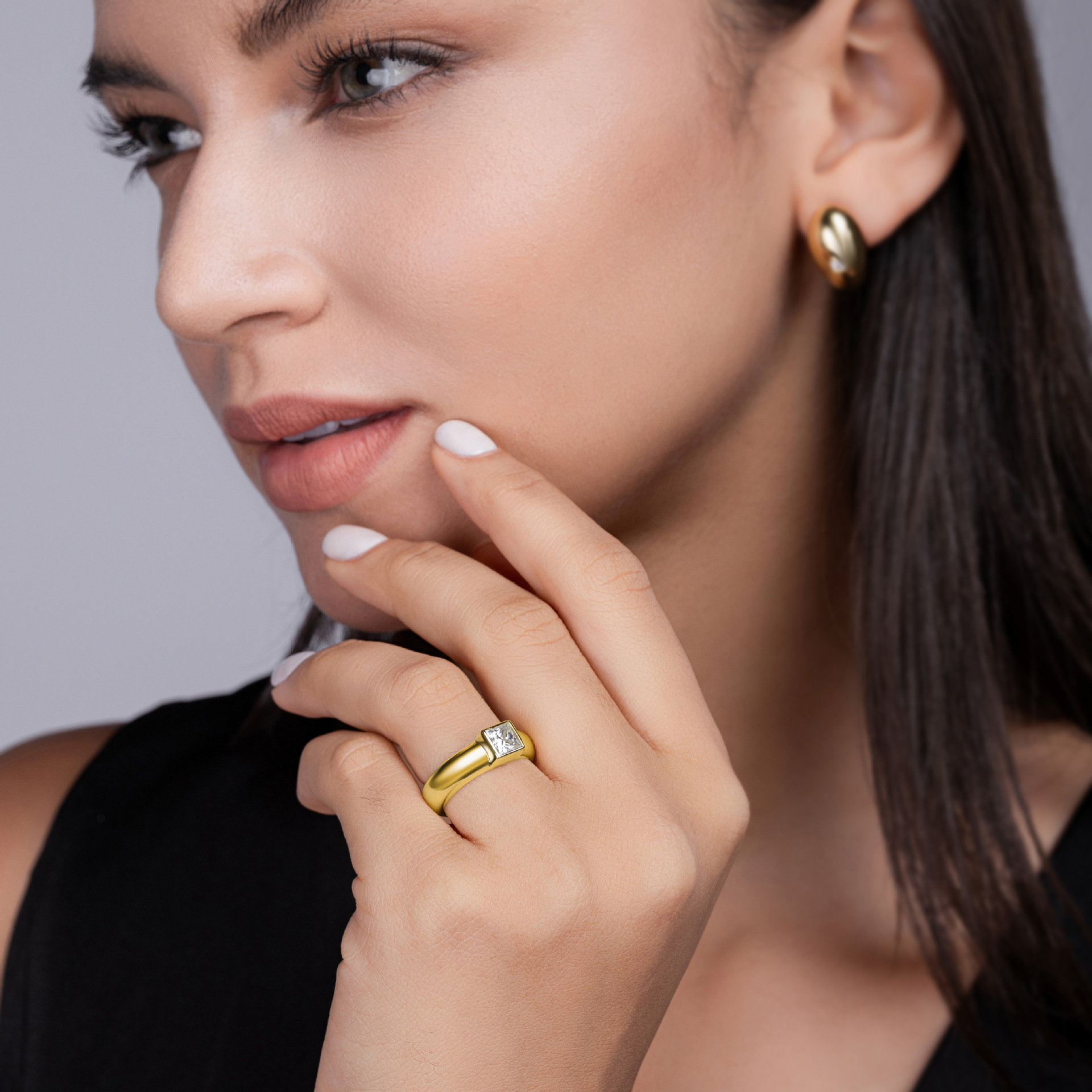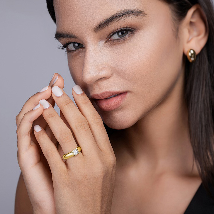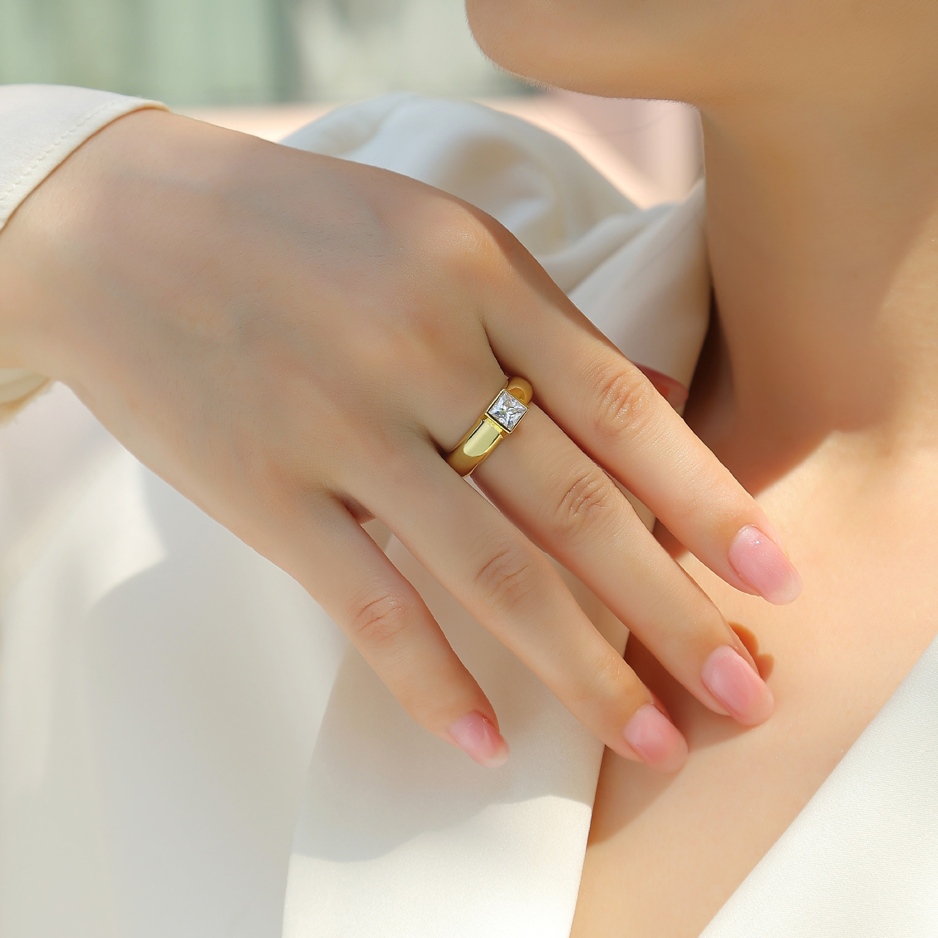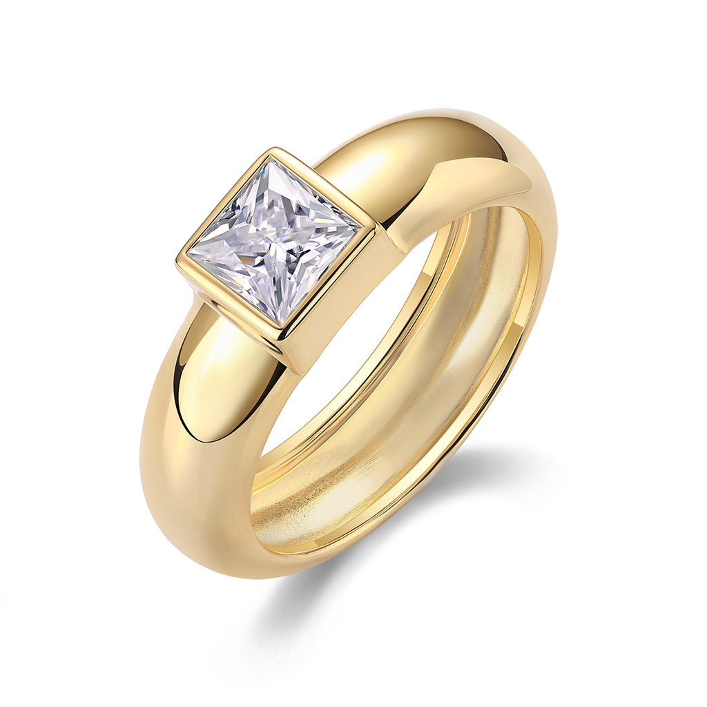 香槟星潮跨境Etsy直播热卖ins风女戒批发S925银镀18k黄莫桑石指环