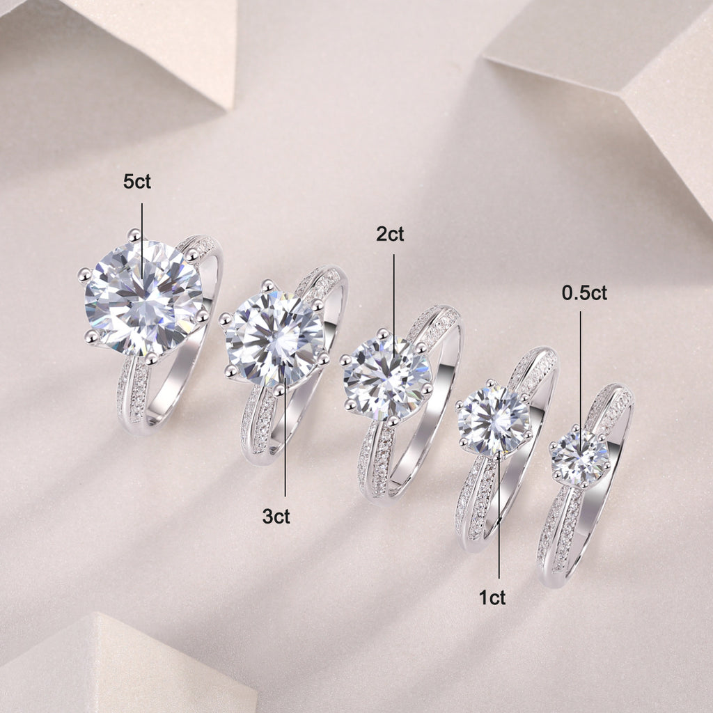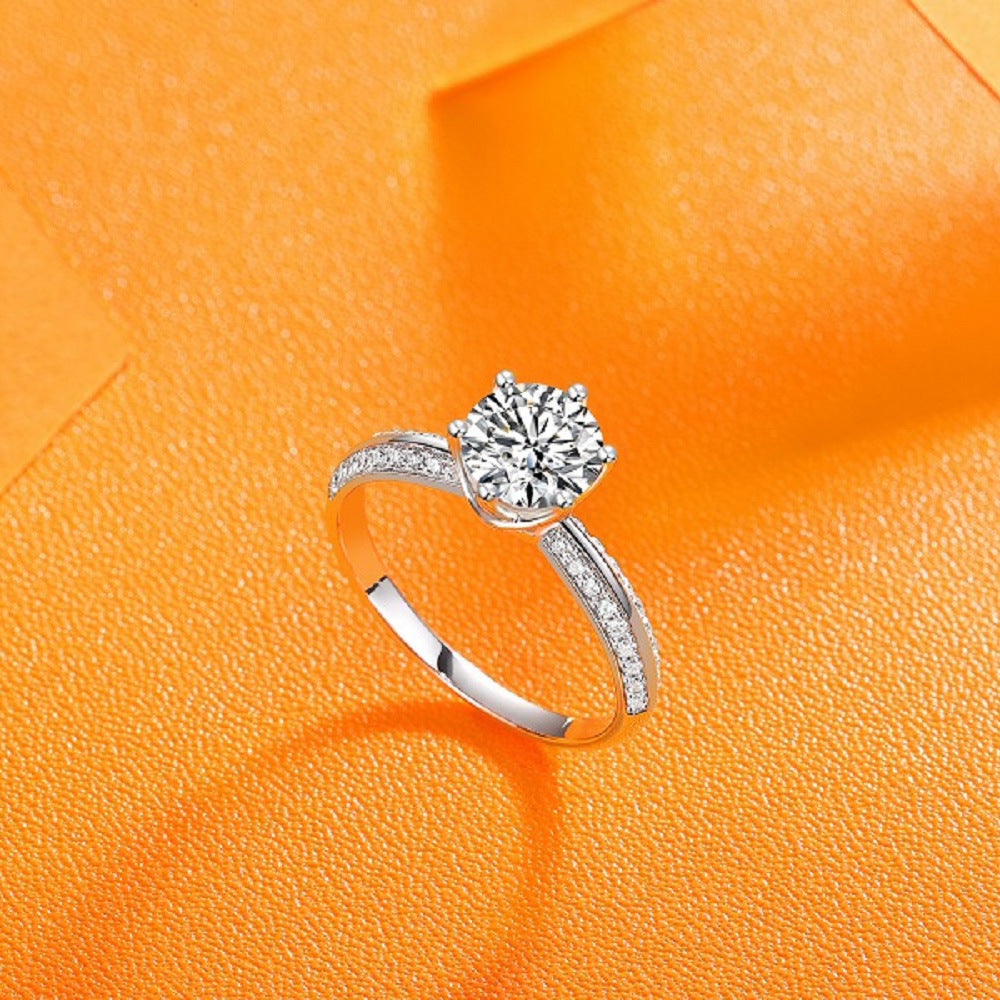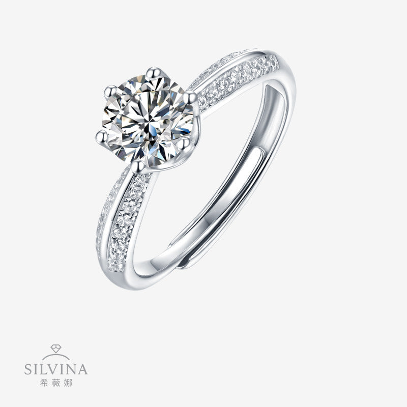 跨境S925银莫桑石热销六爪婚戒女士时尚轻奢半壁江山戒指指圈指环