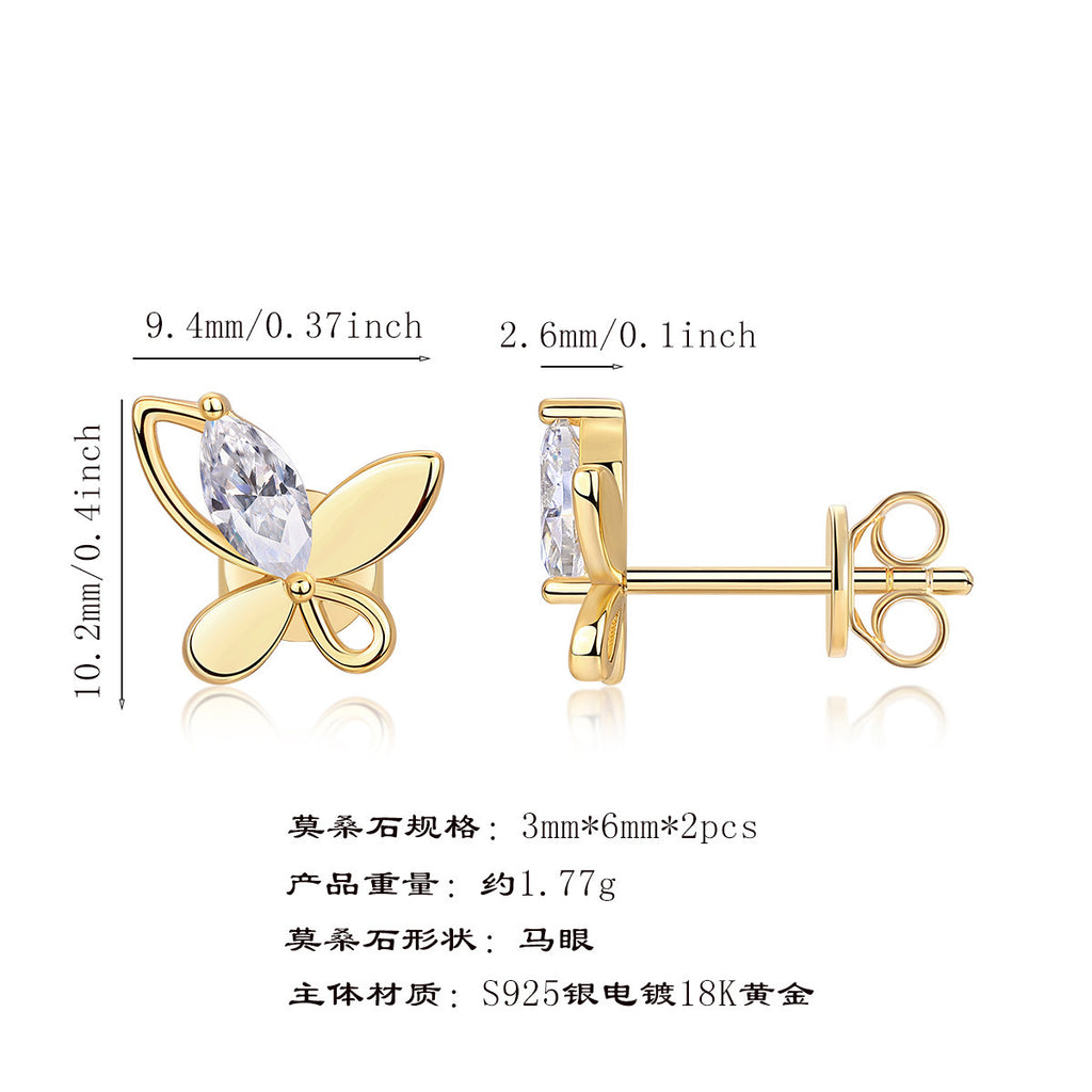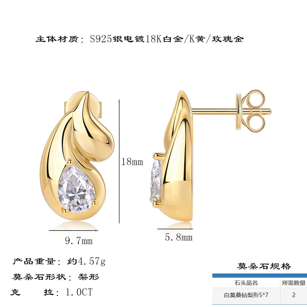 直播跨境热卖eBaySHEIN耳坠 S925银镀18k黄莫桑石INS风耳饰品
