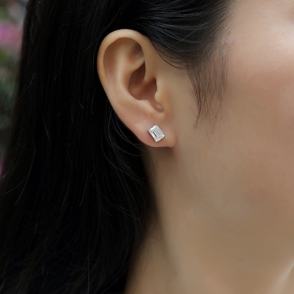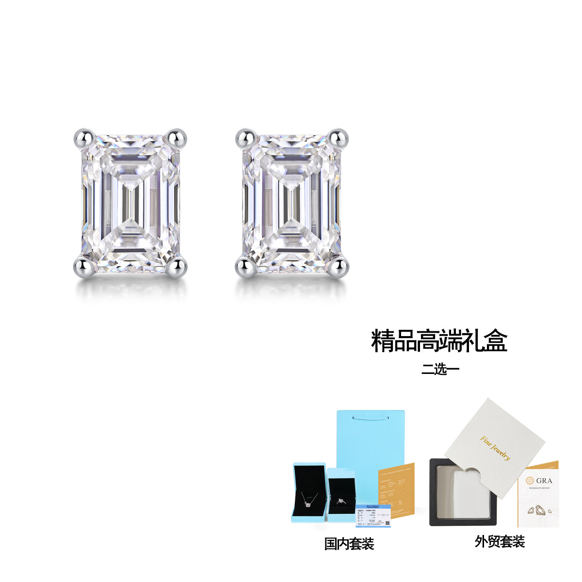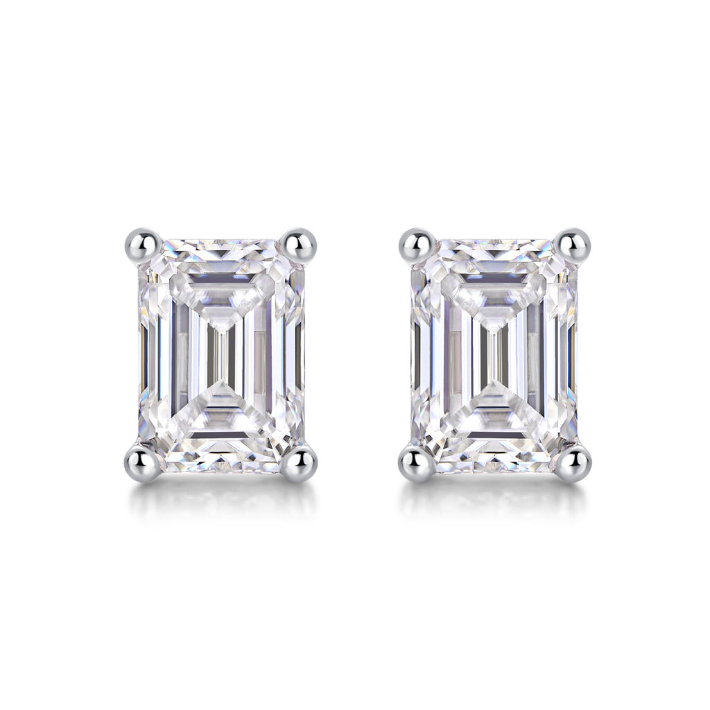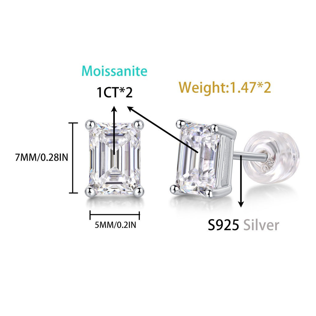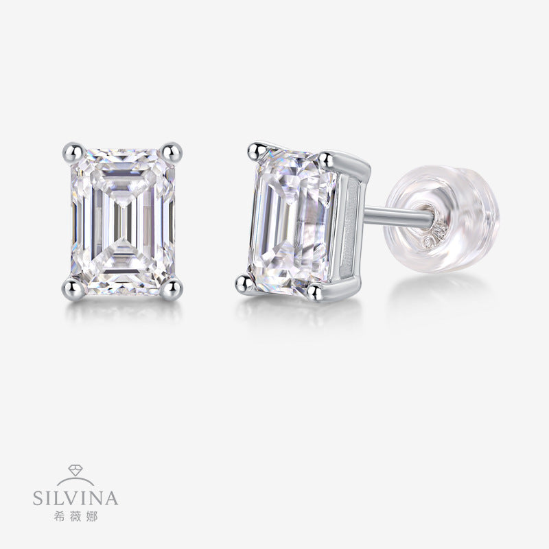 跨境速卖通 shopify祖母绿切割长方形男士女士S925银莫桑石耳钉